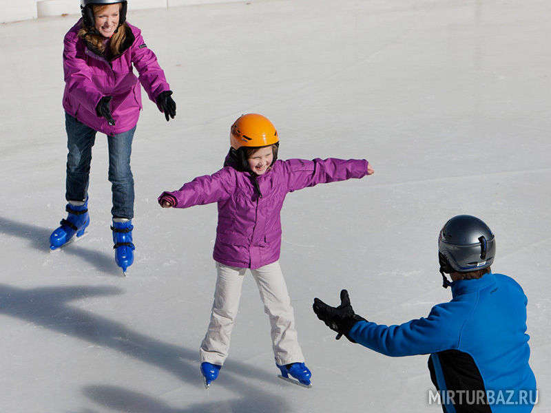 Как только устанавливается постоянный мороз и лед на форелевом озере становится безопасным, администрация парка отдыха организует на нем каток.