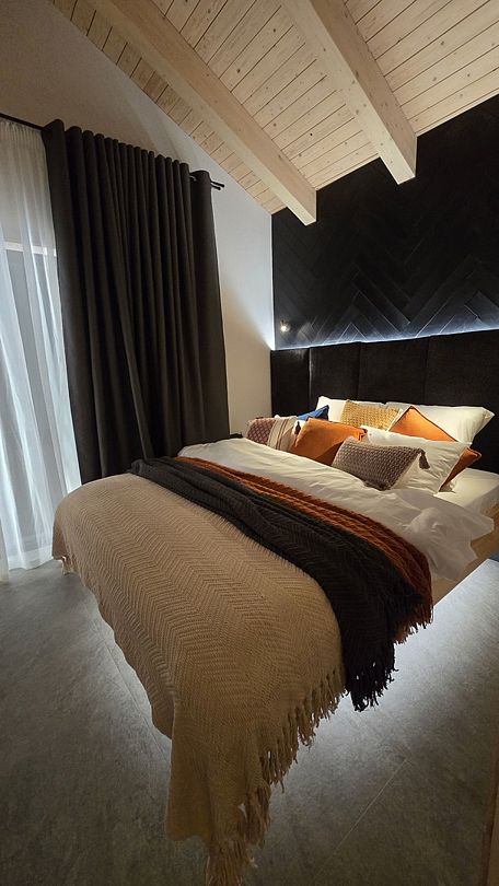 Шале 2 с панорамным видом на озеро в спальне