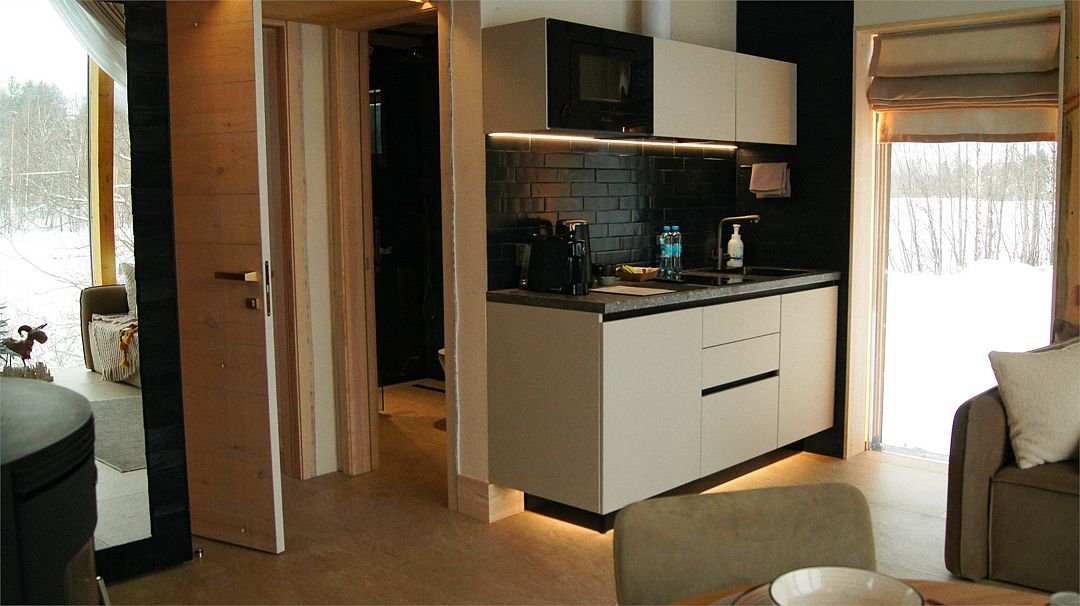Насладитесь отдыхом на террасе с дизайнерской мебелью и погрейтесь в горячей купели PolarSpa. Для развлечений предусмотрен проектор с экраном и беспроводной интернет. В мини-баре вас ждут снеки и напитки.