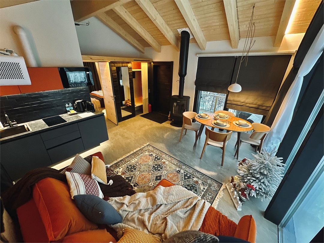Отдельный вход в Лодж, собственная терраса с горячей купелью, и грилем обеспечит незабываемый романтический выходной на двоих или уютный отдых для всей семьи.
