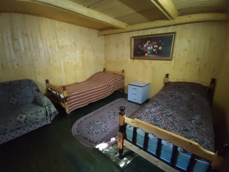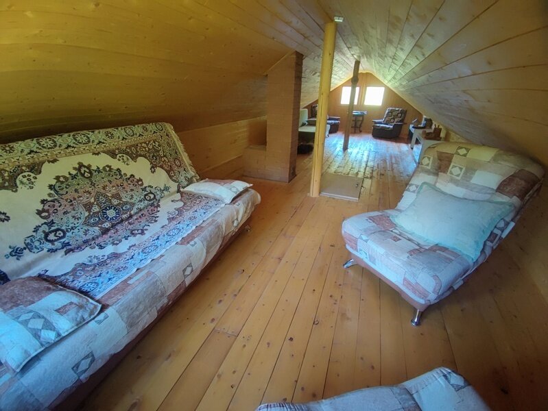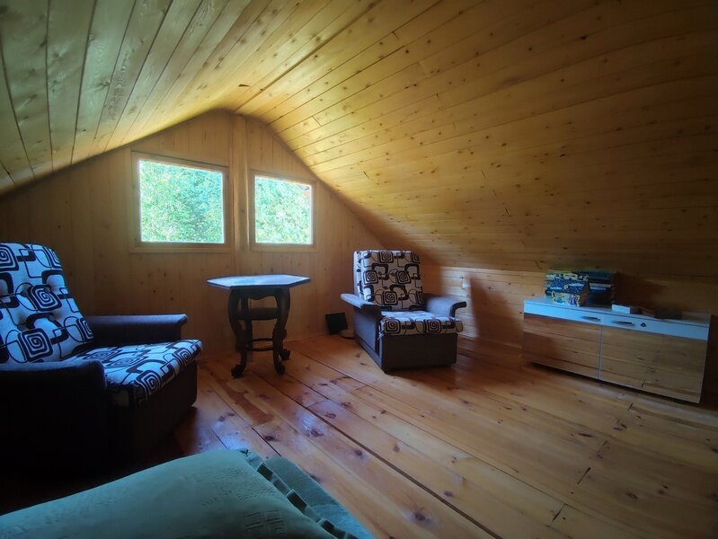 В доме имеется два отдельных номера на три спальных места, мансарда на 4 спальных места, кухня с газовой плитой и туалет. Большая веранда может вместить более 40 человек. Вы можете провести здесь праздник, корпоратив или провести выходные с семьей и друзьями.