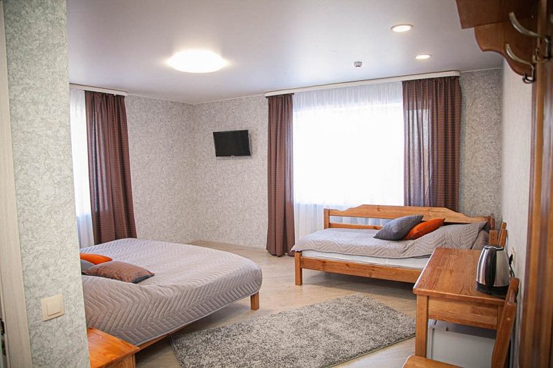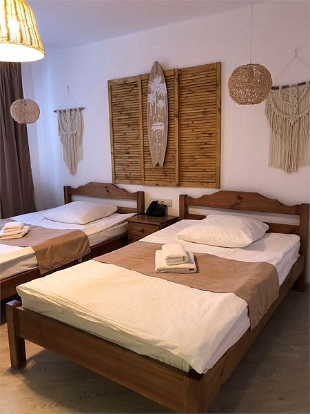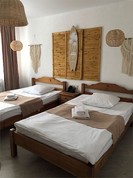 Внимание! Для 5го гостя- раскладной диван.Двуспальная кровать, две односпальные кровати,с/у