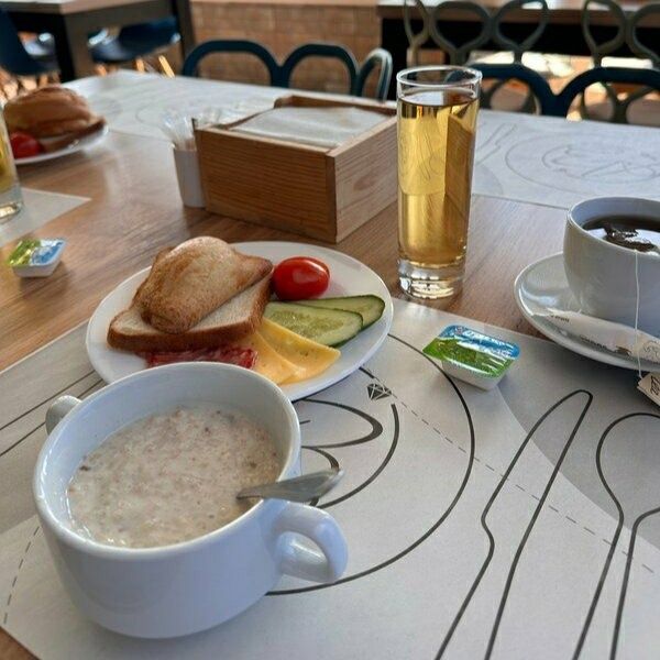 Для вас приготовим кашу / сосиски / нарезку колбасы, сыра, ветчины / варёные яйца / овощи, фрукты / хлеб, выпечку / йогурты / чай и кофе. Разные блюда чередуются, поэтому если вы гостите больше суток, то вас ждут разнообразные завтраки.