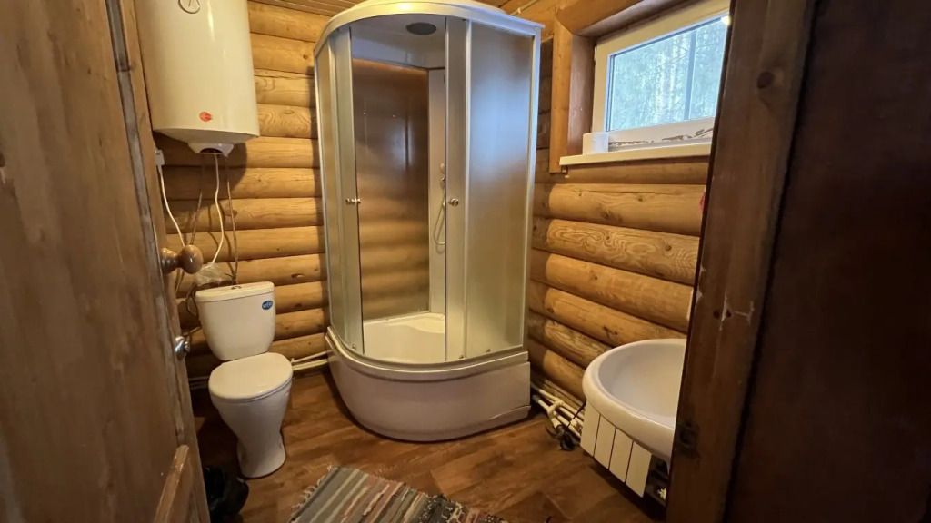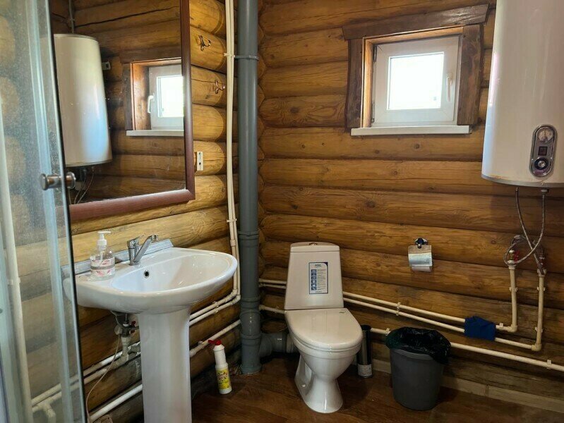 Бревенчатый дом в русском стиле со всеми удобствами. Гостиная, три спальни, кухня, санузел с душевой кабиной.