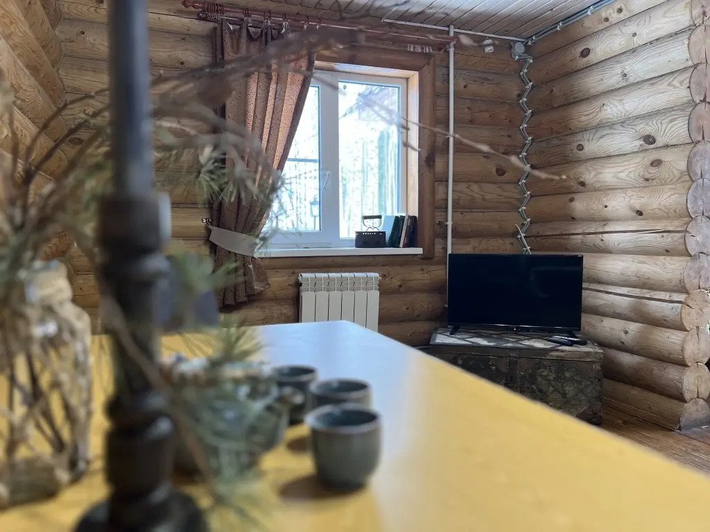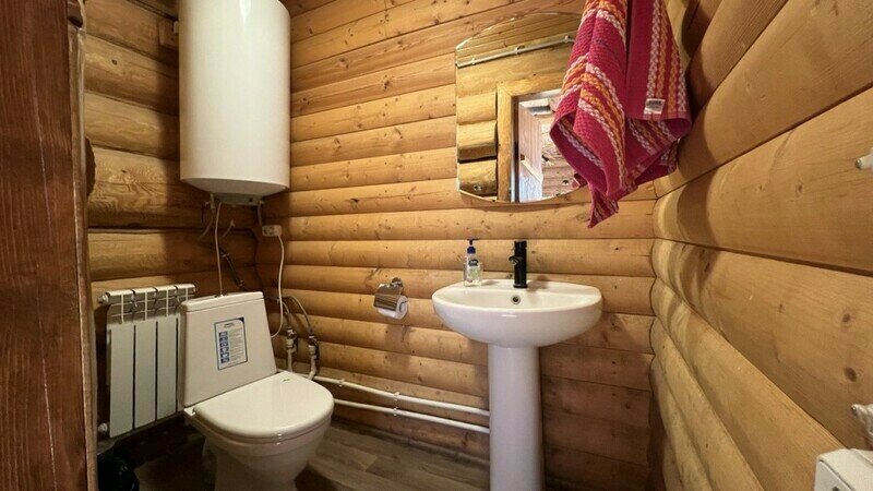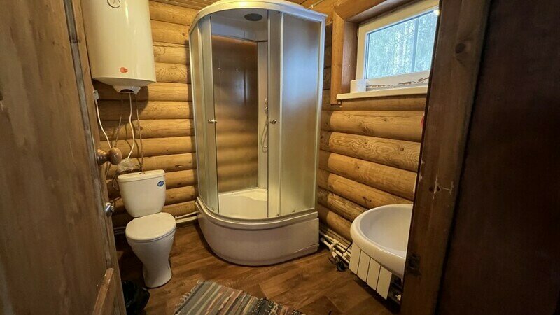 Бревенчатый дом в русском стиле со всеми удобствами. Гостиная, четыре спальни, кухня, два санузла, душевая кабина.