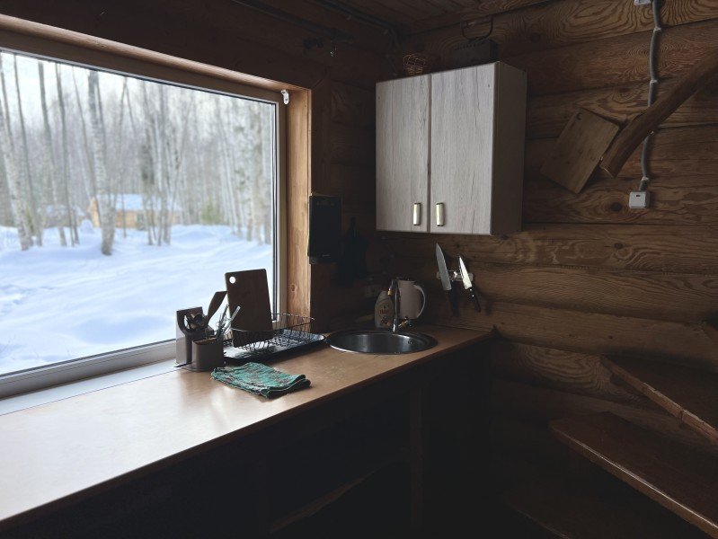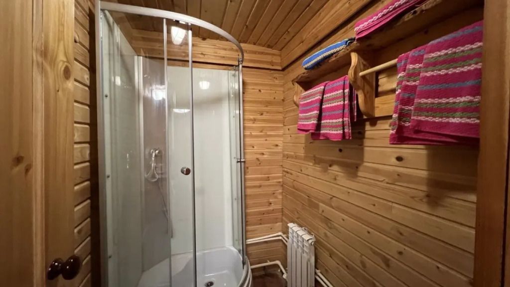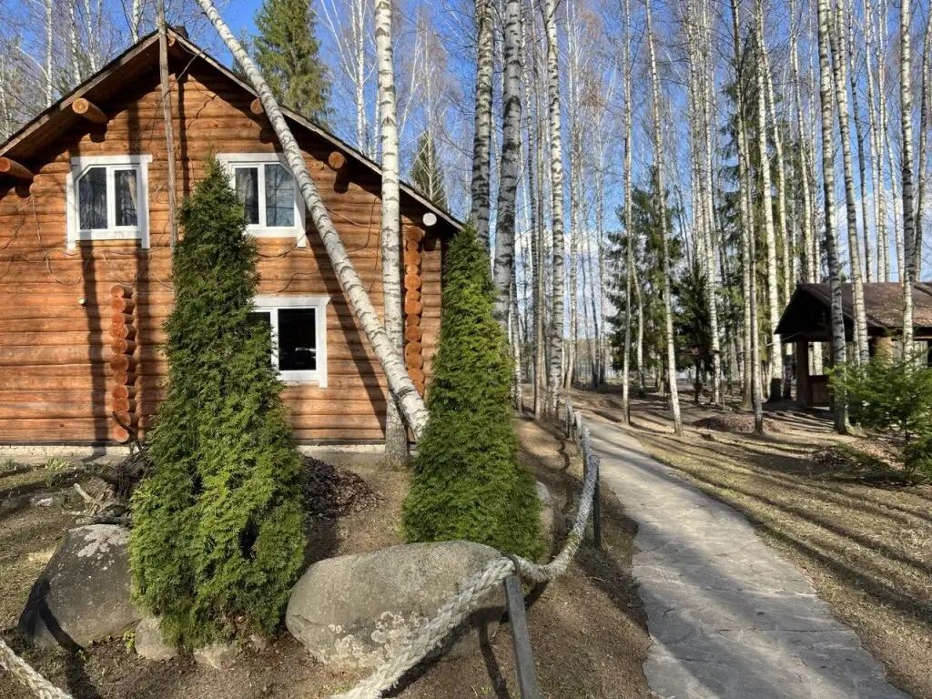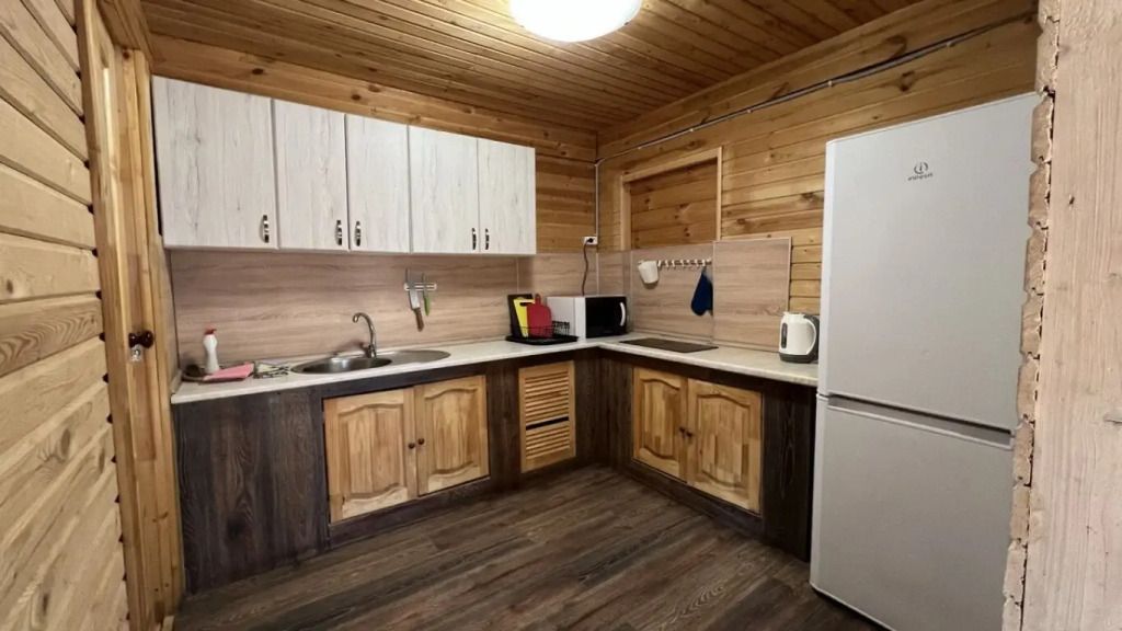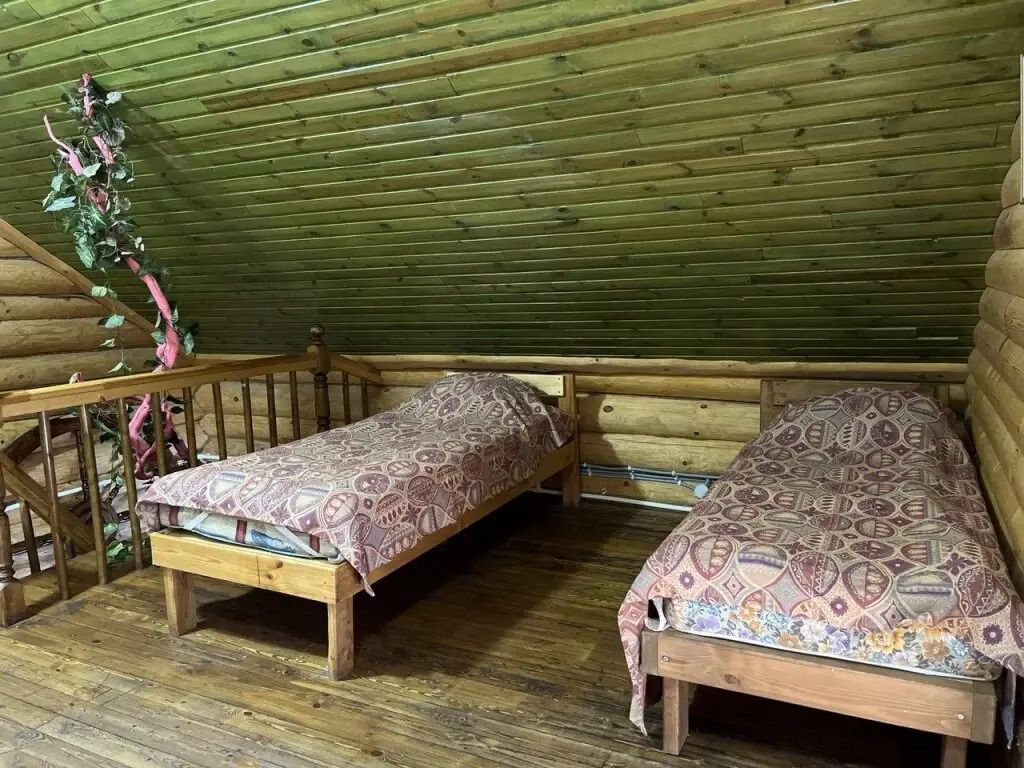 Бревенчатый дом в русском стиле со всеми удобствами. Гостиная, две спальни, кухня, санузел с душевой кабиной.