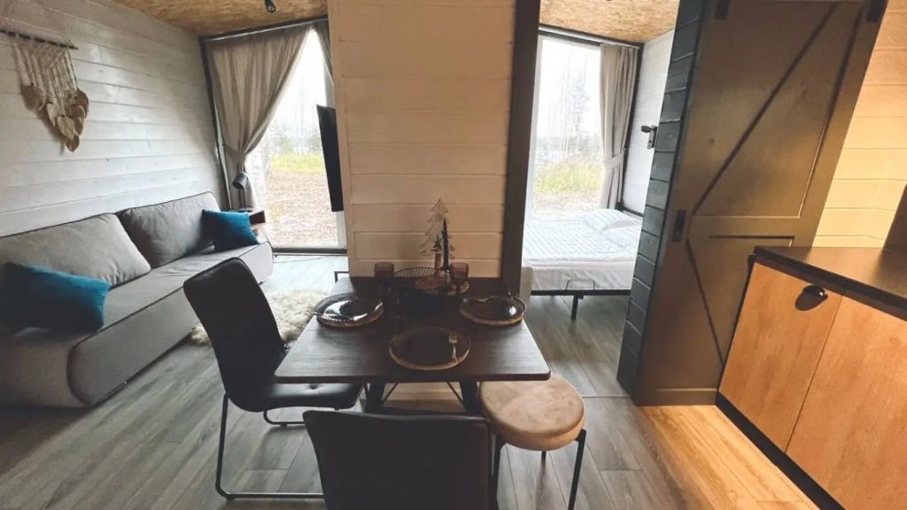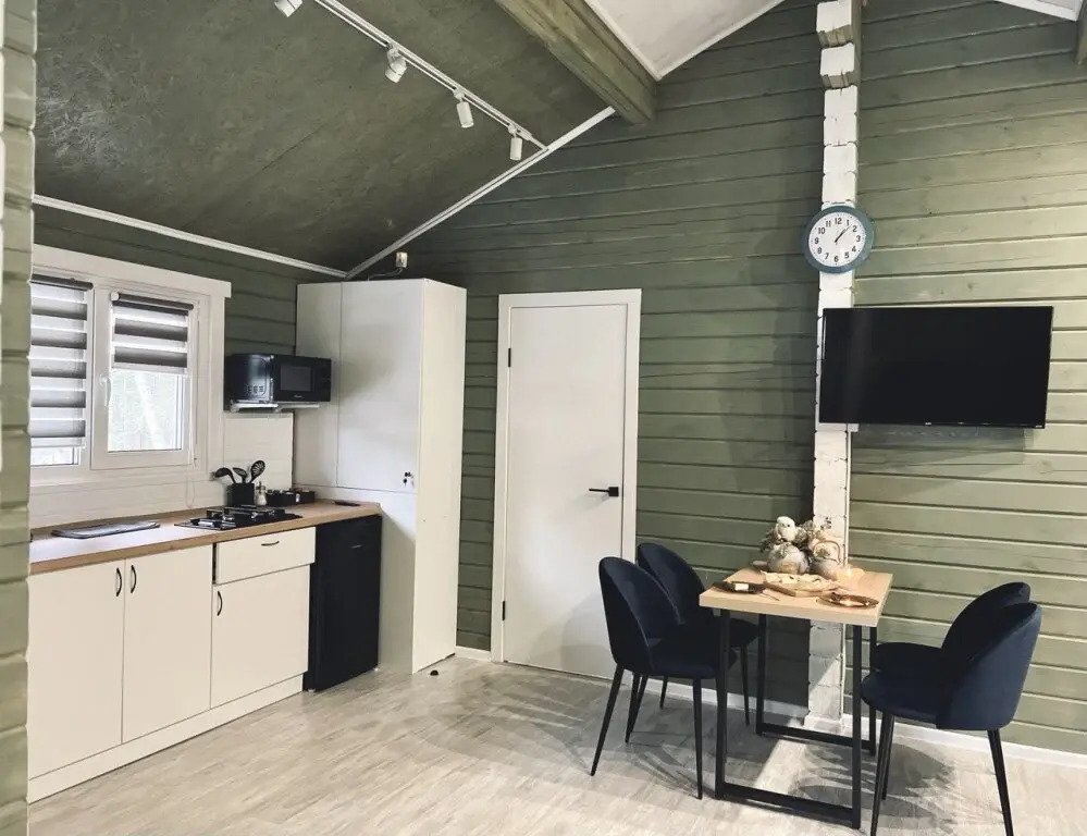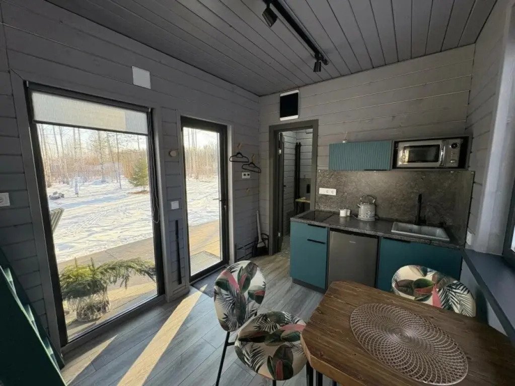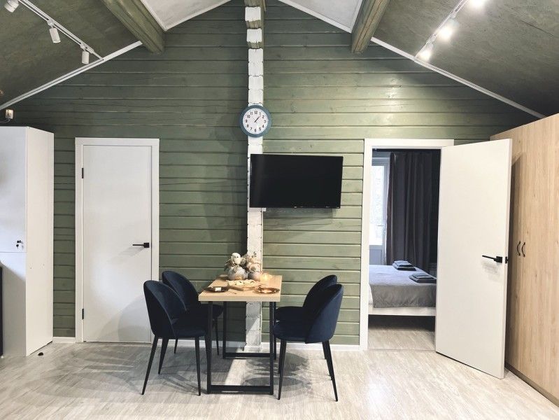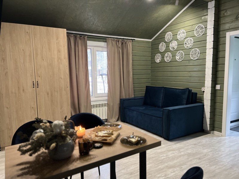 Уютная студия гостиная с двуспальным спальным местом на втором ярусе, а также раскладной диван . дом оснащен современным текстилем, создающим атмосферу уюта и спокойствия. Собственная ванная комната, мини-кухня для приготовления любимых блюд прямо на месте. На улице мангальная зона.
