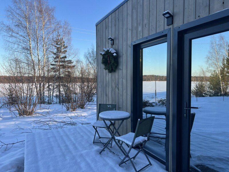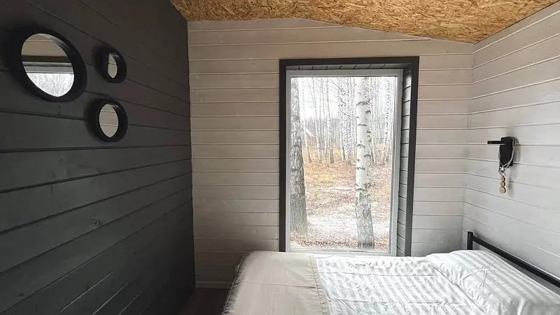 Для проживания гостям предлагаются три деревянных домика со всеми удобствами: малый дом Снегирь, дом Лесной и дом Боцман. Каждый из низ выполнен в русском стиле из бревен. В номерах мебель из натуральных материалов.