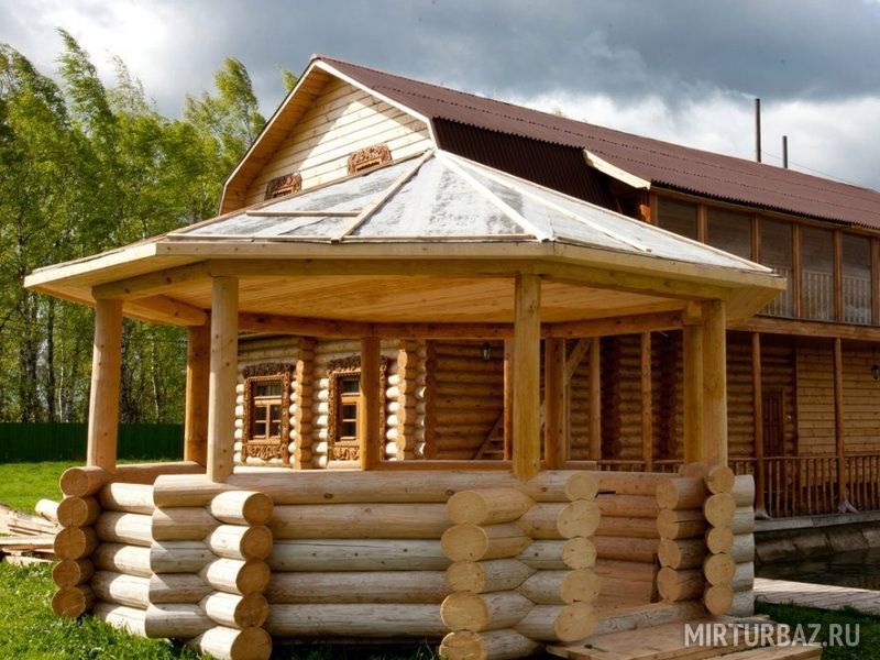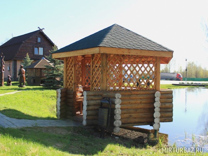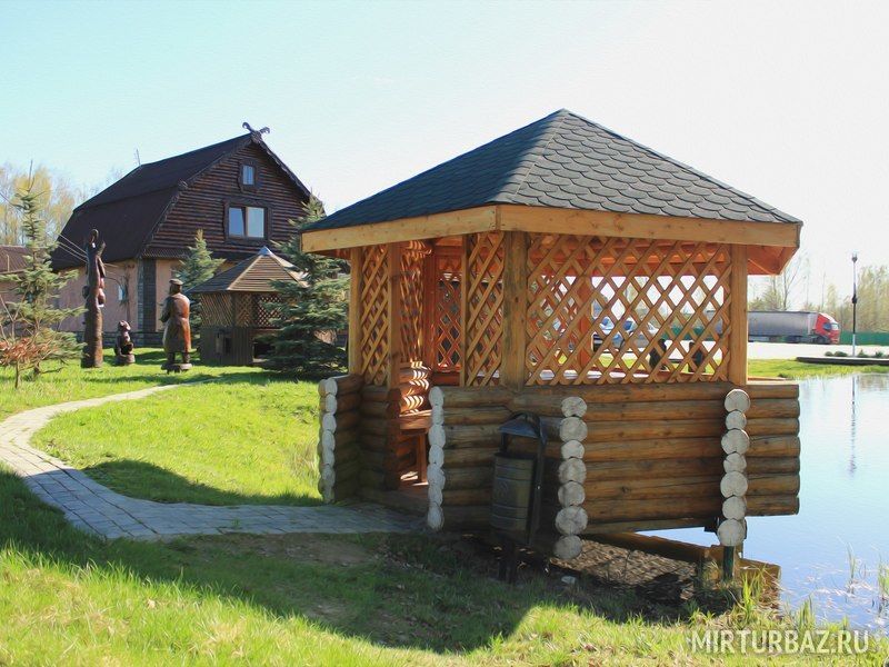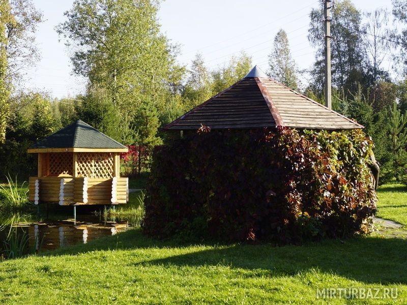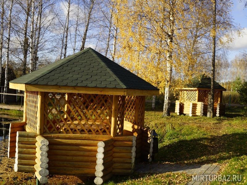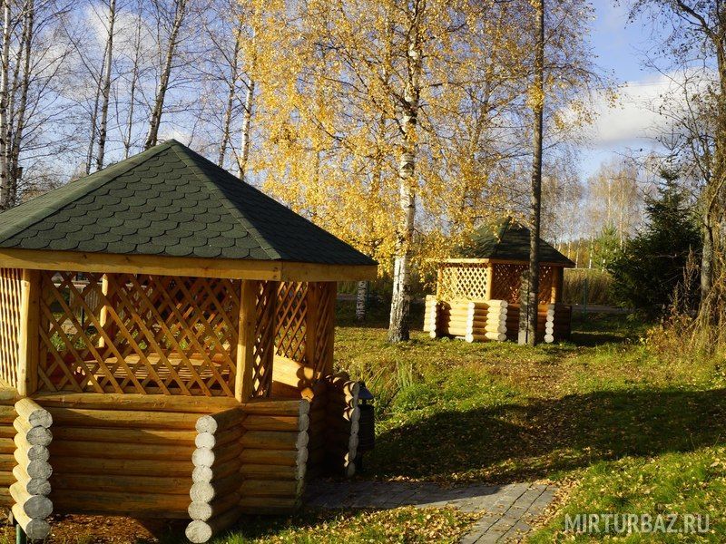 Уютные деревянные беседки расположены по территории комплекса. Они отлично подходят для посиделок дружной компанией на свежем воздухе.