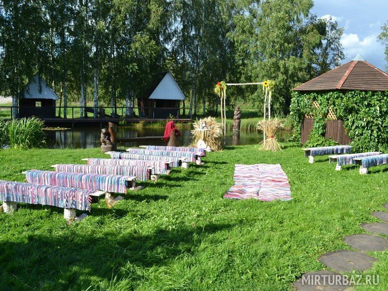 Регистрация брака на природе, отдых всей семьей и друзьями, чудесная природа с красивым прудом, беседками и резными фигурками, удобная парковка ждут Вас!