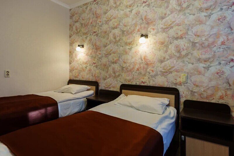 Оснащение номера: 3 отдельные кровати, лоджия, санузел с душем, жидкое мыло, комплекты из 3-х полотенец, фен, стол, стулья, шкаф для одежды, прикроватные тумбочки, светильники, телевизор, холодильник, электрический чайник, фильтр для воды, информационная карта, меню.