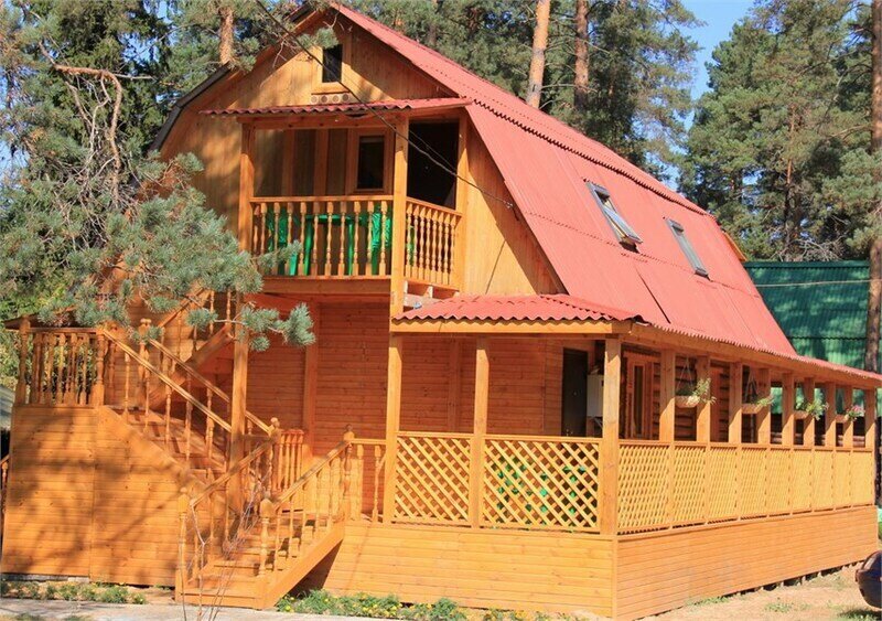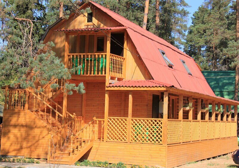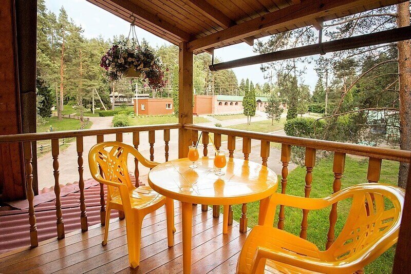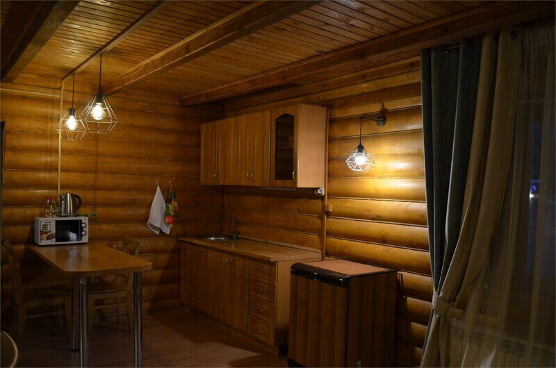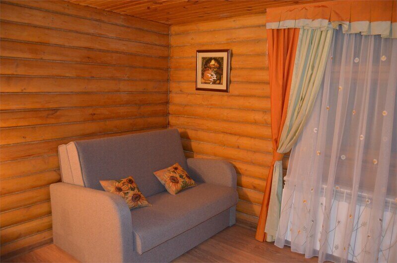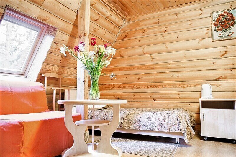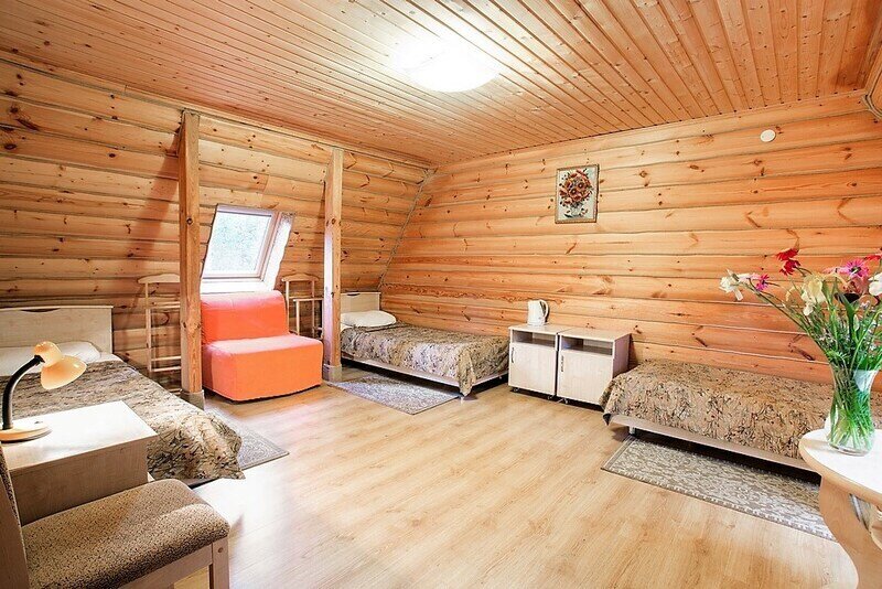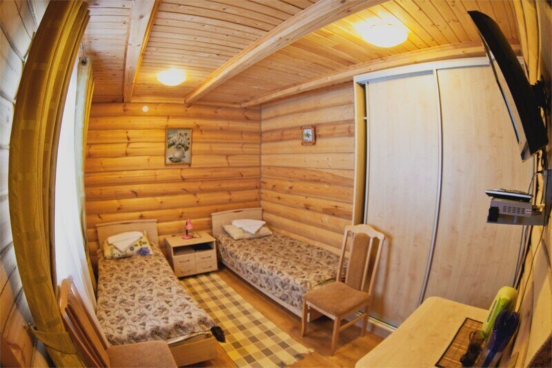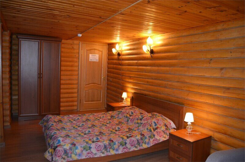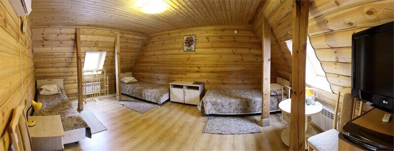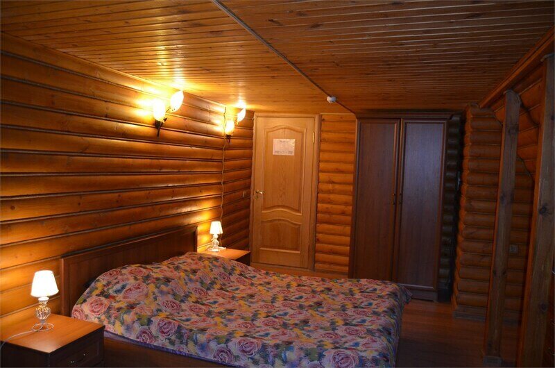 Номера имеют отдельный вход и расположены на втором этаже бревенчатого двухэтажного корпуса.