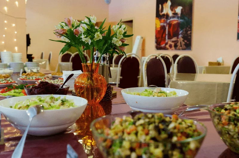 - 14.30 «Скатерть-самобраночка» Обед (можно заказать праздничный обед, банкет или пикник – за дополнительную плату).