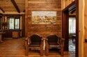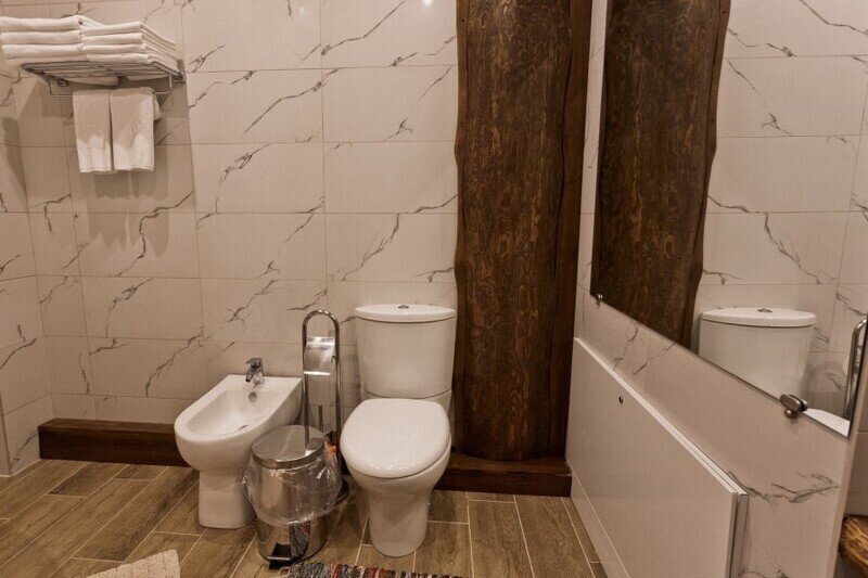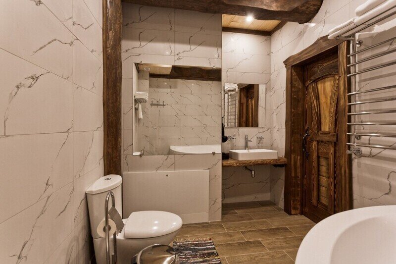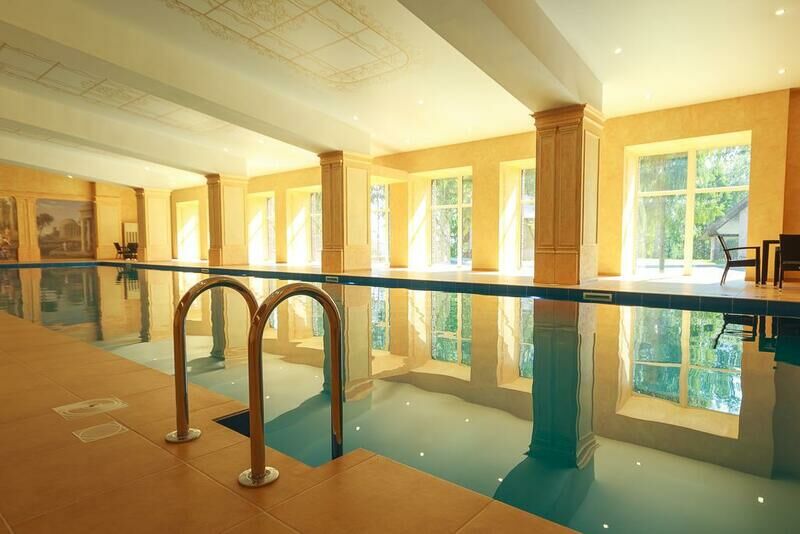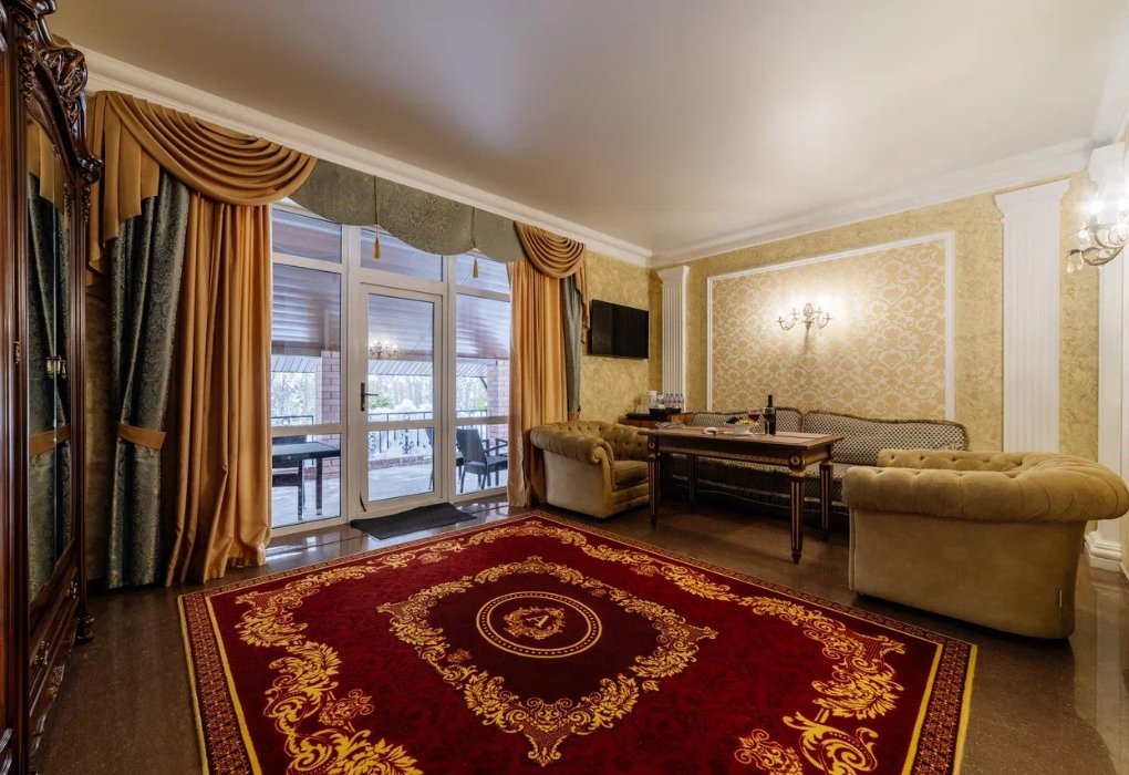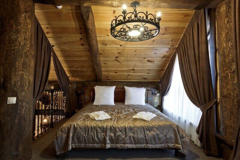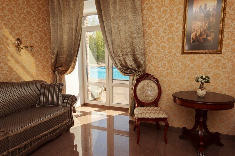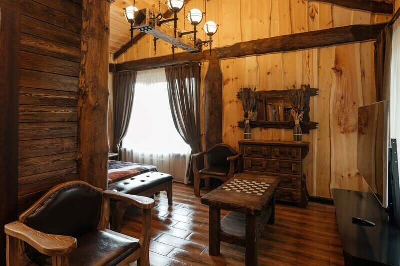 Вторую ночь нам предстояло встретить в охотничем домике, просторный номер встретил нас высокими потолками, массивной мебелью и такими же масивными предметами интерьера, а так же просто гиганским телевизором с диагональю 70+. из плюсов номера это его размер, близость к главному зданию и к зверинцам, очень запомнился енот, козленок, олени и кролики. Крики павлинов будто переносят в субтропики.... Из минусов, это отсутствие красивых видов из окон(номер 24) и хорошая слышимость соседей через дверь-портал, но длилось наше прибывание в здесь не долго, ближе к вечеру начался ливень стеной, и по нашему возвращению в номер обнаружили течь с потолка в ванной комнате, очень грустно что не повезло с исполнителями кровельных работ, и такой красивый ремонт страдает, звонок администратору, и мы переезжаем в vip-номер, с порога погружаясь в атмосферу комфорта и стиля рококо, отдельная гардеробная, большая ванная комната с джакузи и выход к бассейну из номера, всё это оставило у нас только самые приятные воспоминания. К сожалению до открытия бассейна на улице оставалось несколько дней, компенсировали это купанием в закрытом бассейне и походами в сауну и джакузи. На удивление быстро прогрелась вода в реке Покша, купались в своё удовольствие, но душ на пляже работал только во время работы бара, как и туалет, и это большой такой минус, как и не было качелей, на каркасе висели только цепи, а так хотелось покачаться и сделать памятные фото, хочеться верить, что это всё из-за начала сезона...
