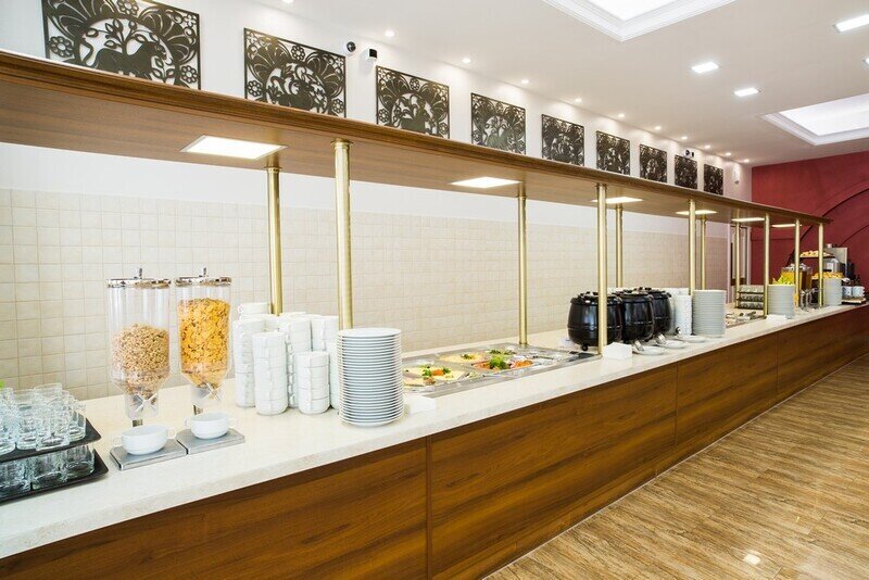 - 3-х разовое питание «шведская линия» - всеобъемлющий выбор блюд на любой вкус, а также широкий ассортимент безалкогольных напитков (завтрак, обед, ужин). Комплементарно для гостей на завтрак неограниченное игристое вино каждый день.