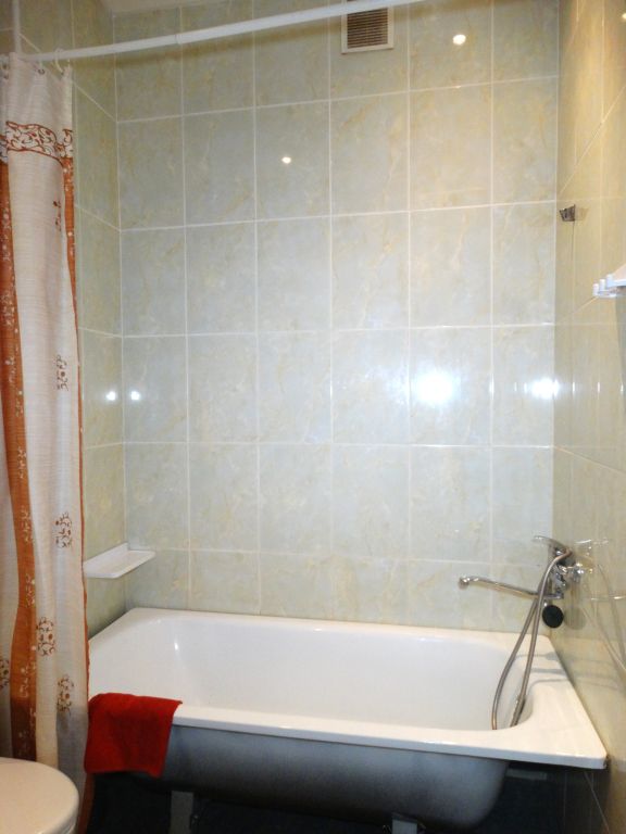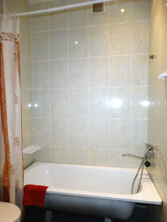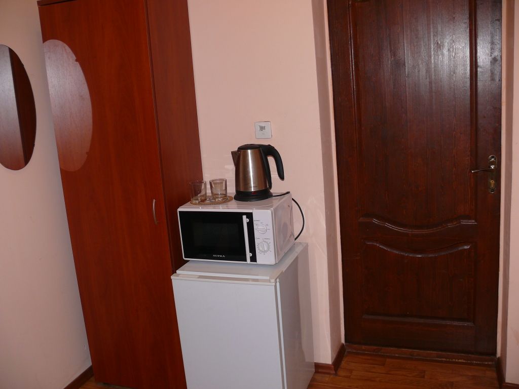 Отдельная комната с кроватью, столом. телевизором. Санузел с ванной, холодильник, микроволновка, чайник – на две комнаты.