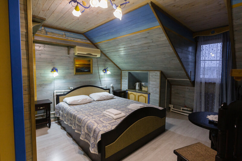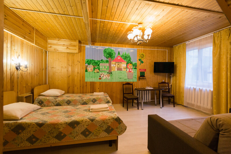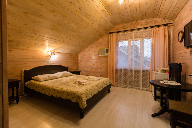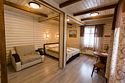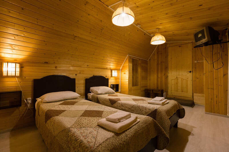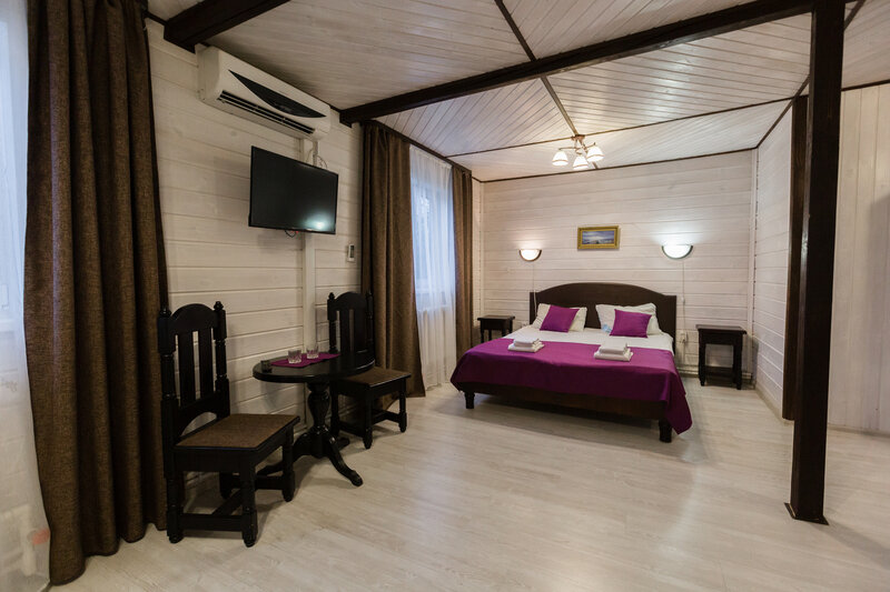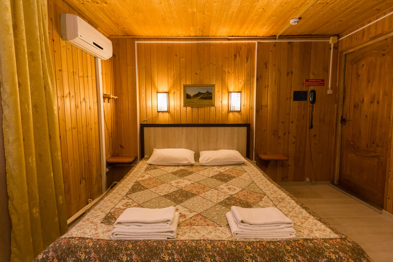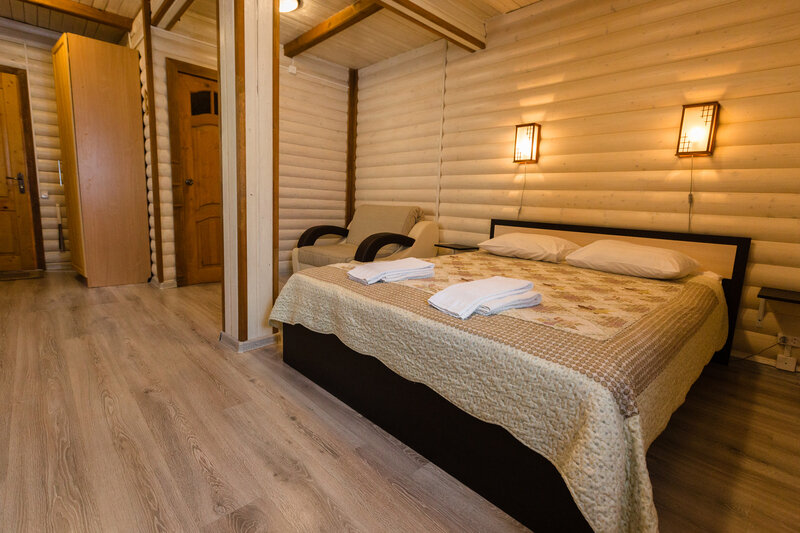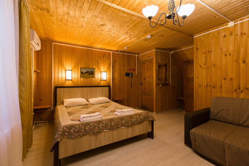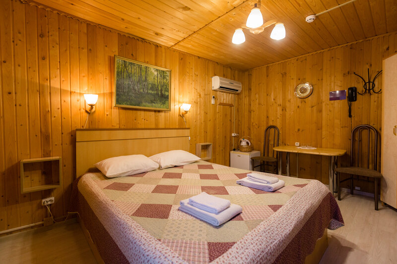 Просторные номера с деревянной отделкой оборудованы всем необходимым для спокойного отдыха.