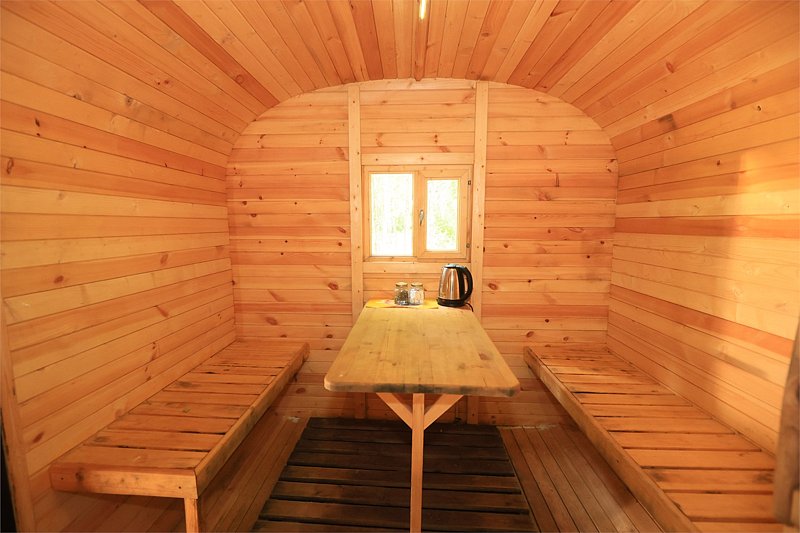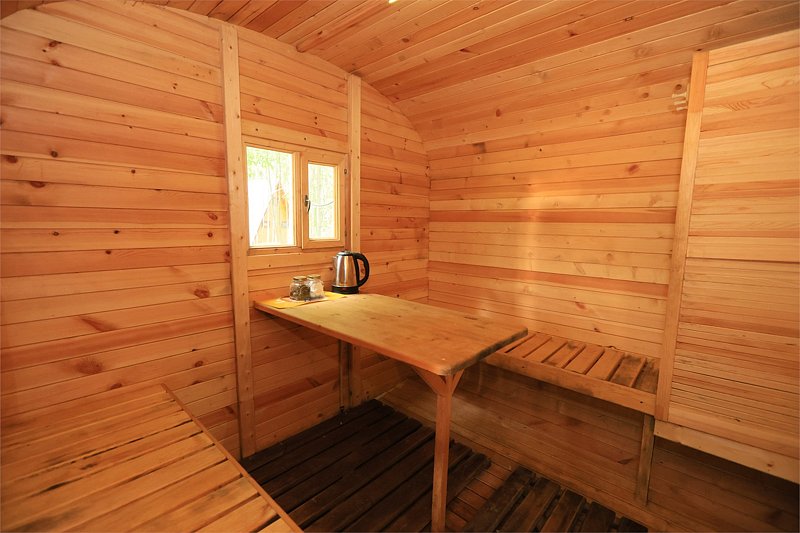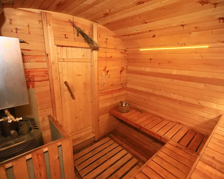 В уютной бане с парной гости смогут насладиться теплом, которое исходит от дровяной печи. Для вашего удобства здесь есть мягкие шапочки, свежие простыни и аромамасла. А чтобы завершить незабываемый опыт, можно выпить травяной чай, который подарит вам умиротворение.