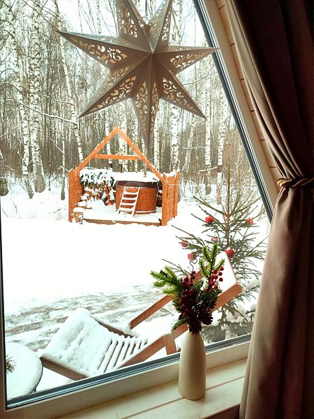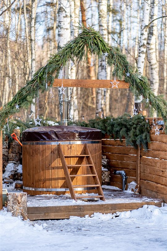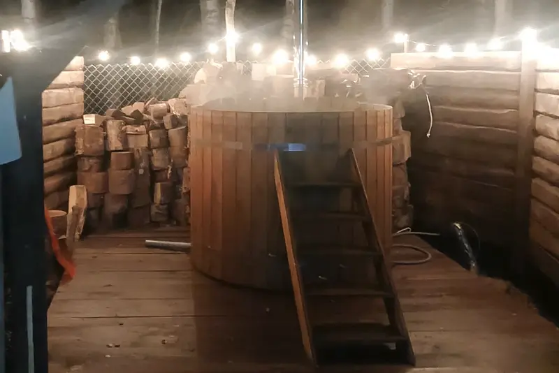Купель Фурако располагается около А-фрейм домов и оплачивается отдельно.