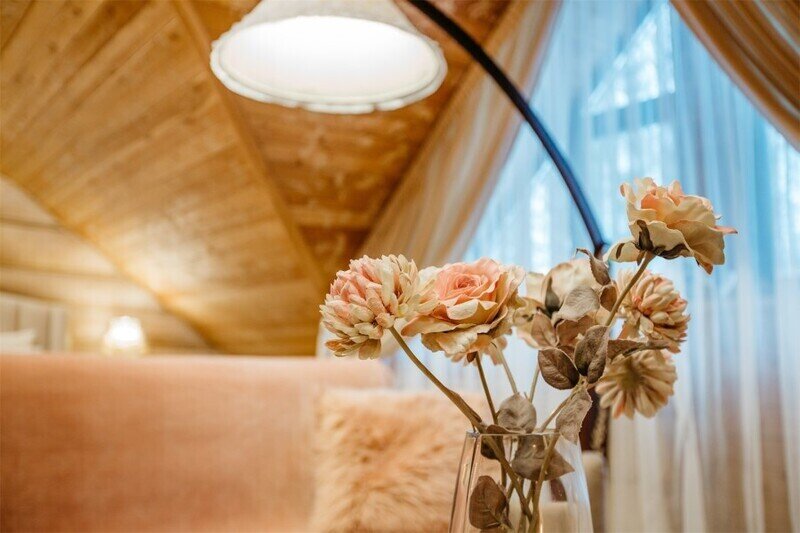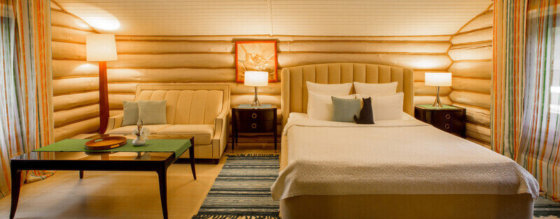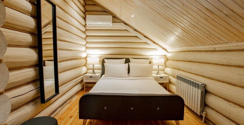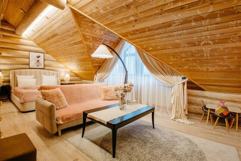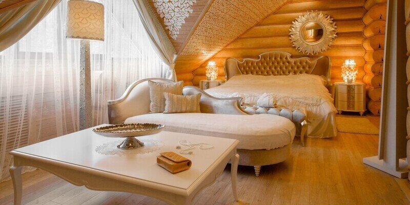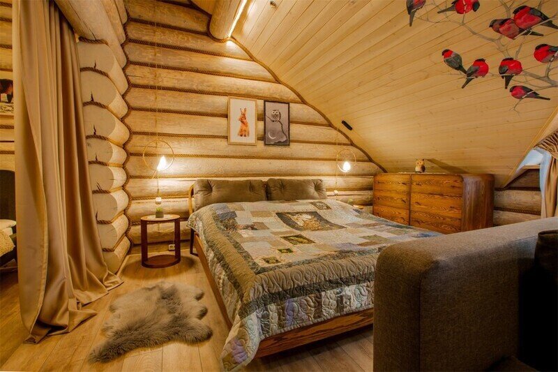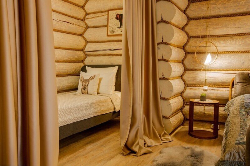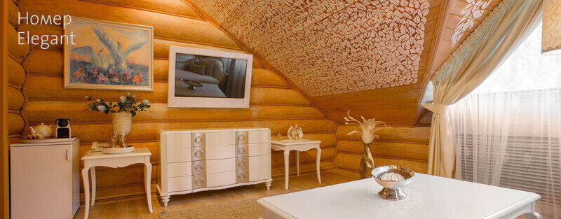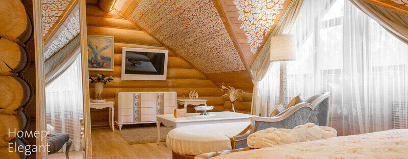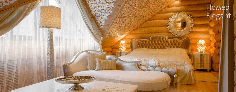 Стильный авторский интерьер эксклюзивного номера Elegant по достоинству оценят молодожены и влюбленные. Оригинальное сочетание рубленого дерева и нестареющей классики позволят вам насладиться пребыванием в роскошном номере Elegant. Возможность установки дополнительных мест и размещения гостей младше 18 лет отсутствует.