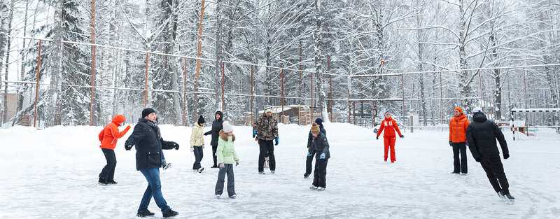 - спортивная площадка (каток), тренажёрный зал и открытая кросс-фит зона;