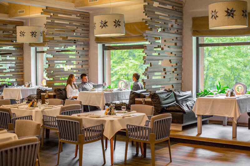 Очень уютный ресторан Лесной с прекрасными видами, в меню есть дичь.