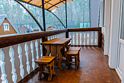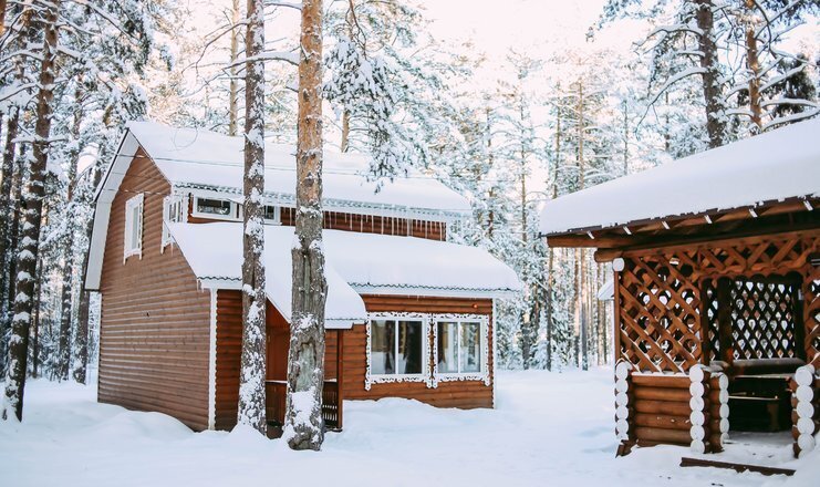 На территории загородного комплекса расположены двух, четырех, шести и семиместные деревянные дома, вы сможете подобрать место для отдыха любой компании. С веранды открывается вид на сосновый бор