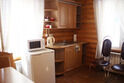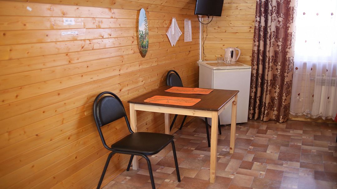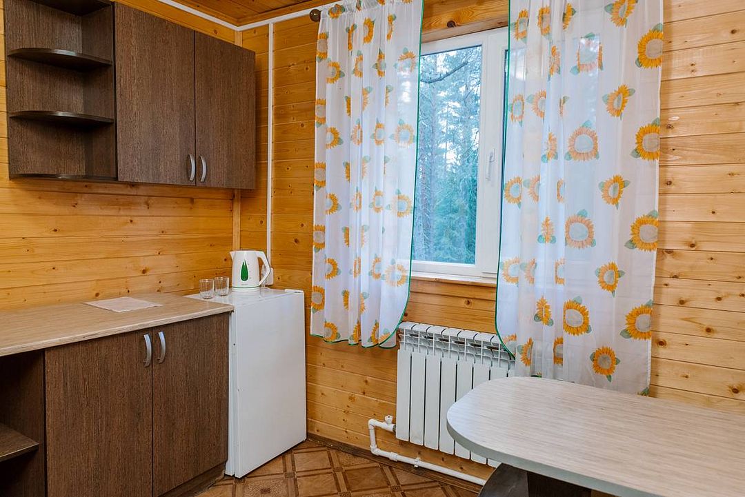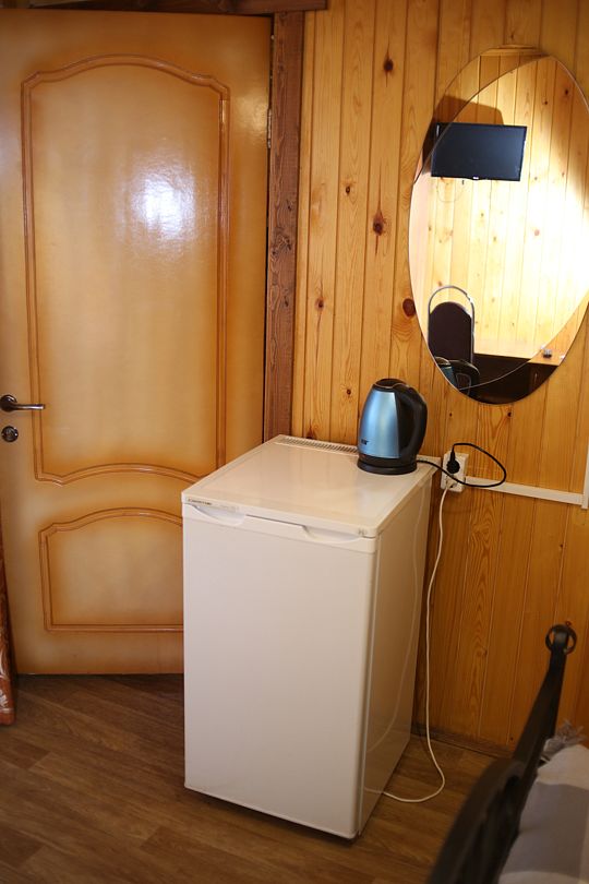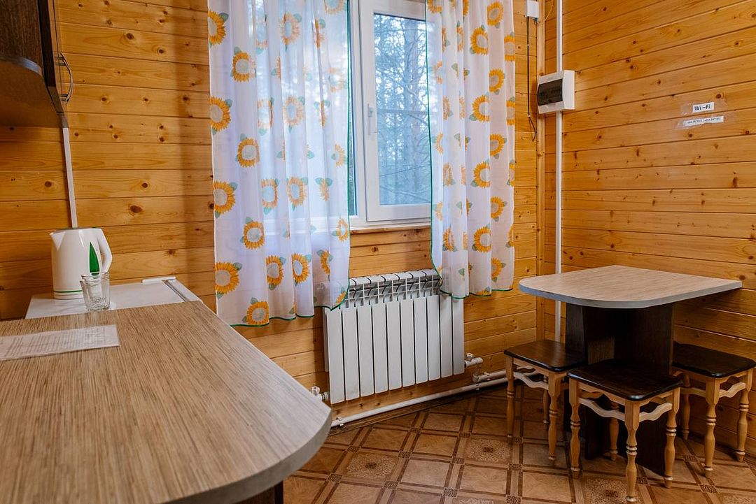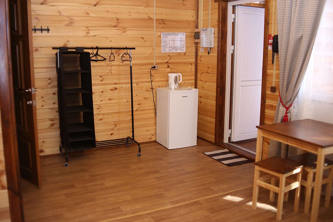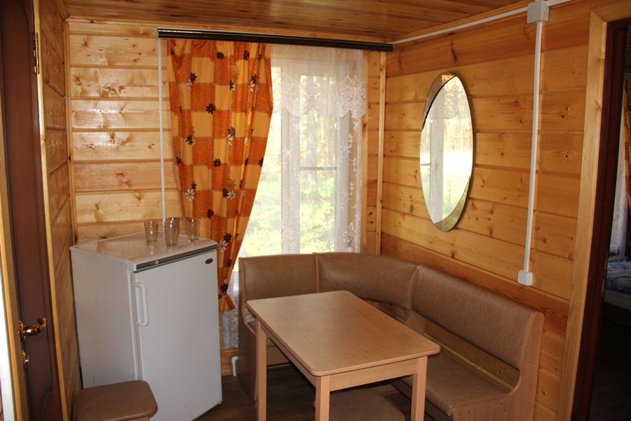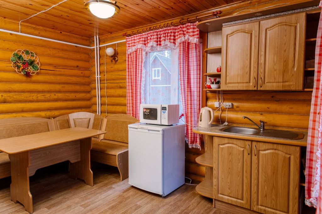 Коттедж отапливаемый, кухня оборудована холодильником, электрическим чайником и СВЧ-печью. Имеется туалетная комната с душевой кабинкой и феном. В коттедже с удобством могут разместиться до пяти человек. Сдается в аренду целиком.