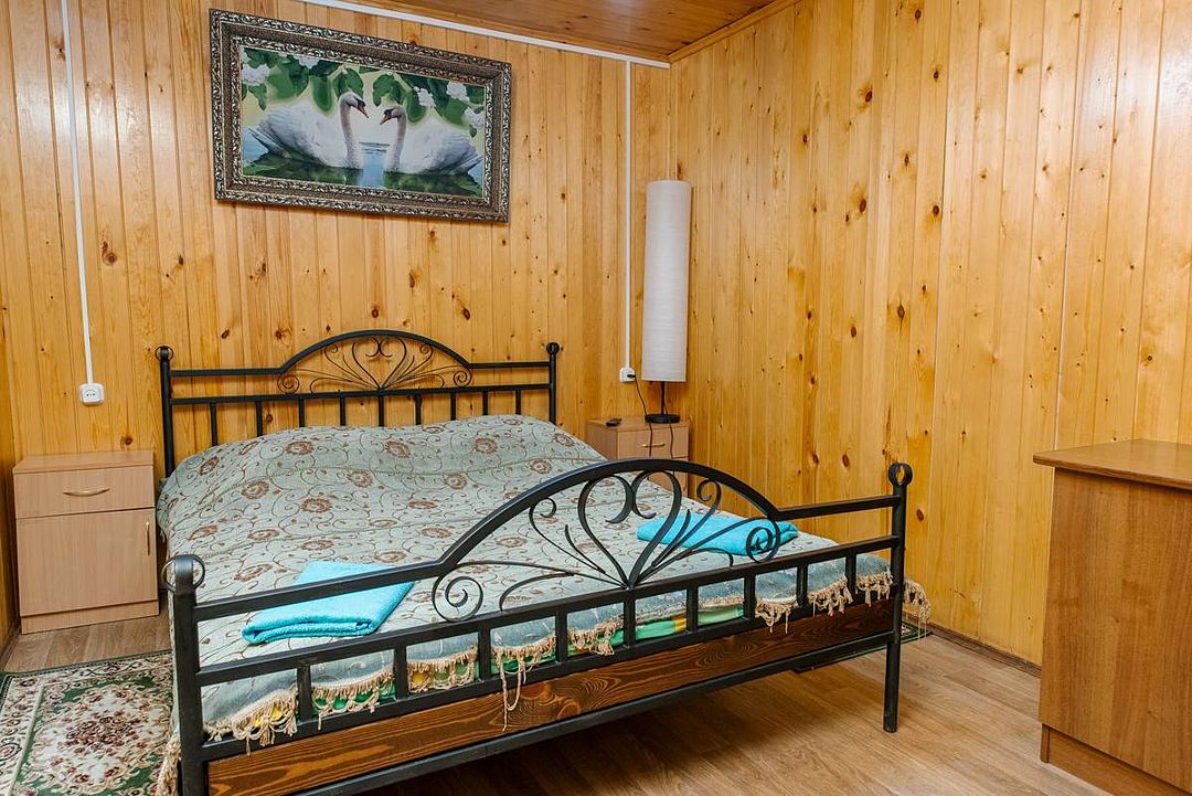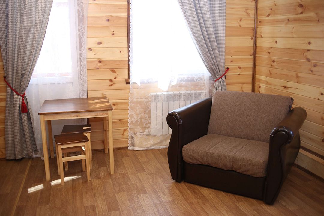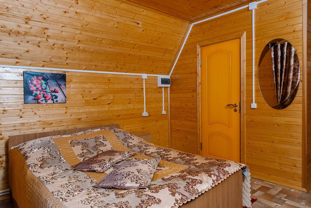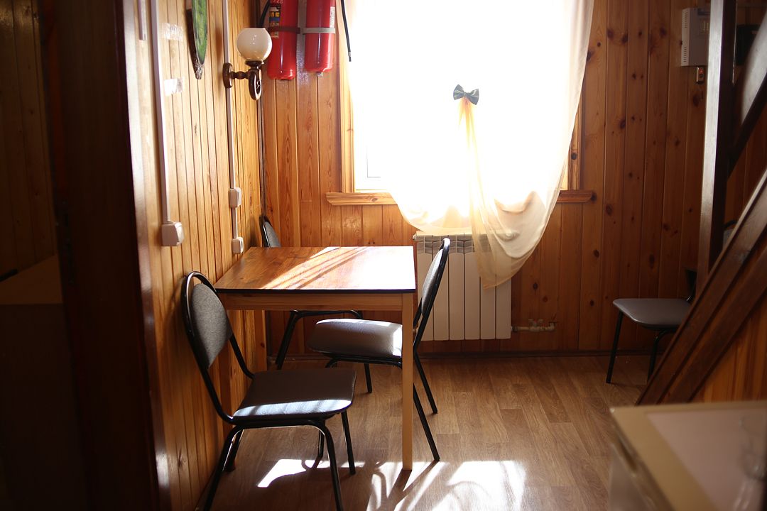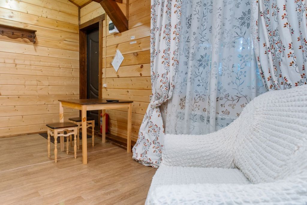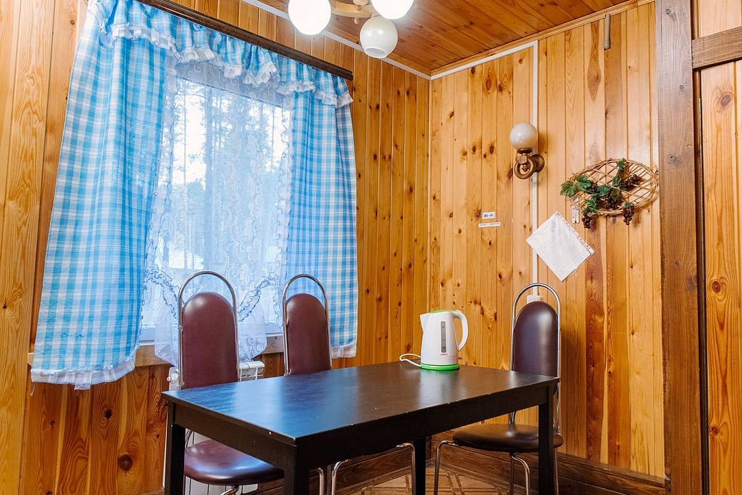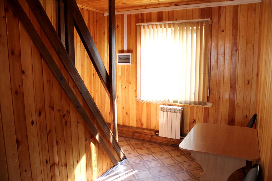 Коттедж отапливаемый, кухня оборудована холодильником, электрическим чайником и СВЧ-печью. Имеется туалетная комната с душевой кабинкой и феном. В коттедже с удобством могут разместиться до пяти человек. Сдается в аренду целиком.