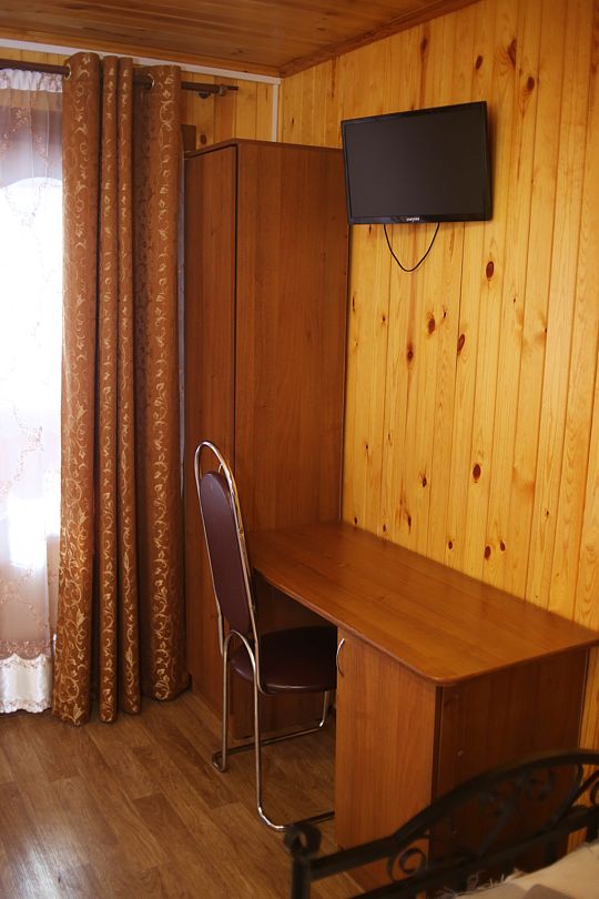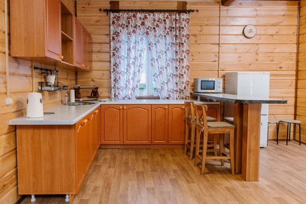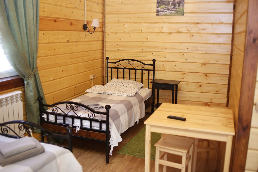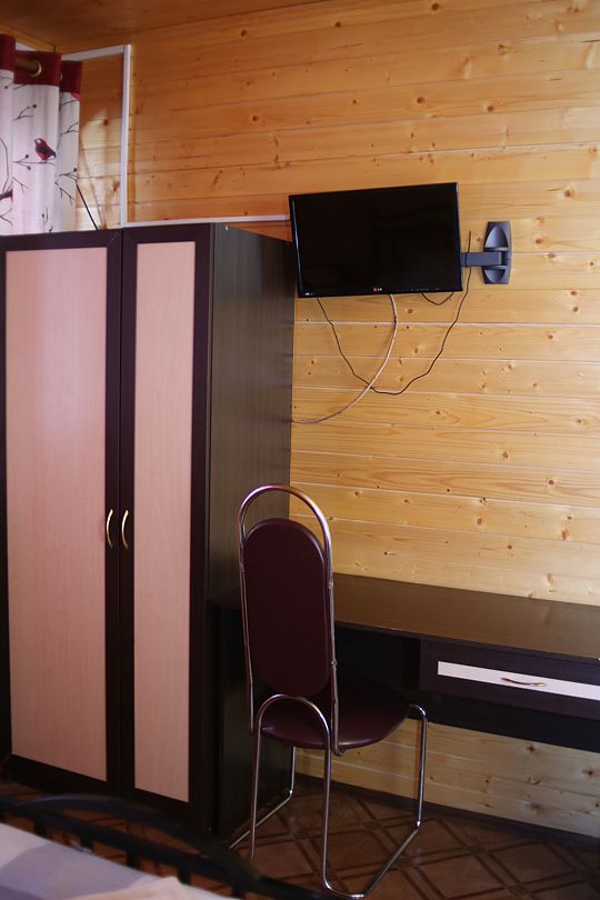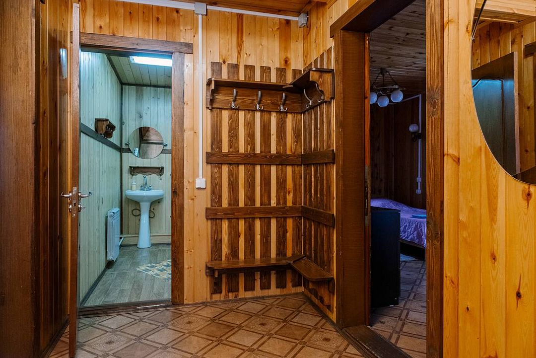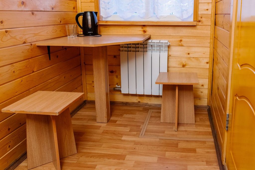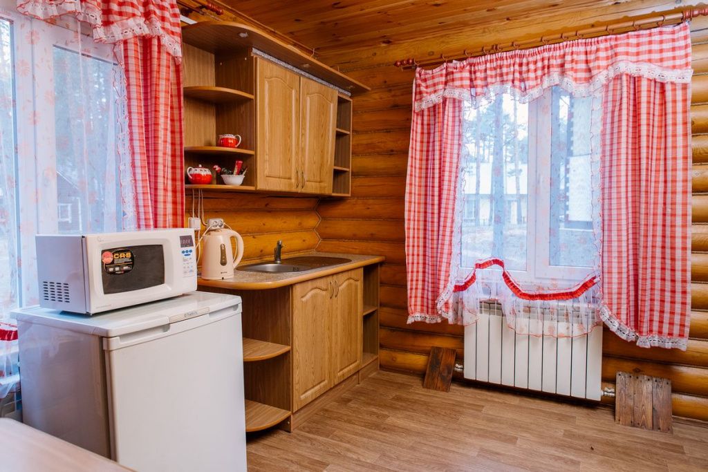 Коттедж отапливаемый, кухня оборудована холодильником, электрическим чайником и СВЧ-печью. Имеется туалетная комната с душевой кабинкой и феном. В коттедже с удобством могут разместиться до пяти человек. Сдается в аренду целиком.