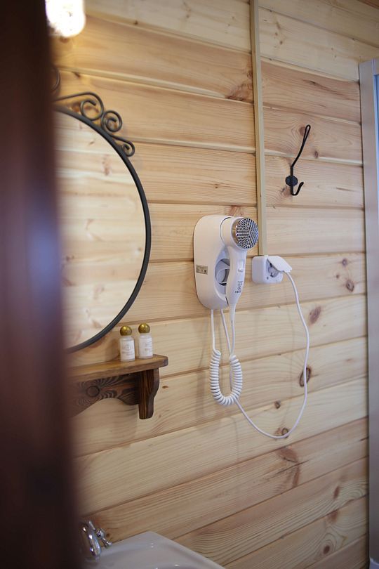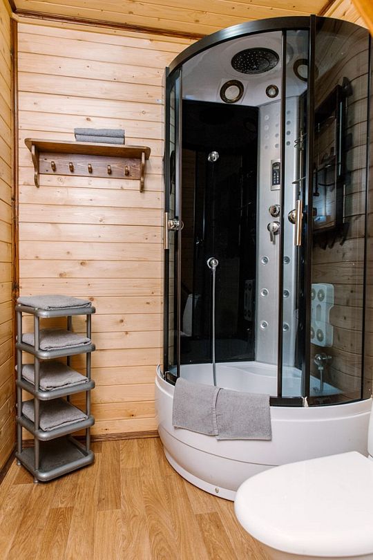 В домах есть отопление, имеется телевизор и холодильник, туалетные комнаты без душа, но с горячей водой. Душ работает круглосуточно в шаговой доступности на территории загородного комплекса.