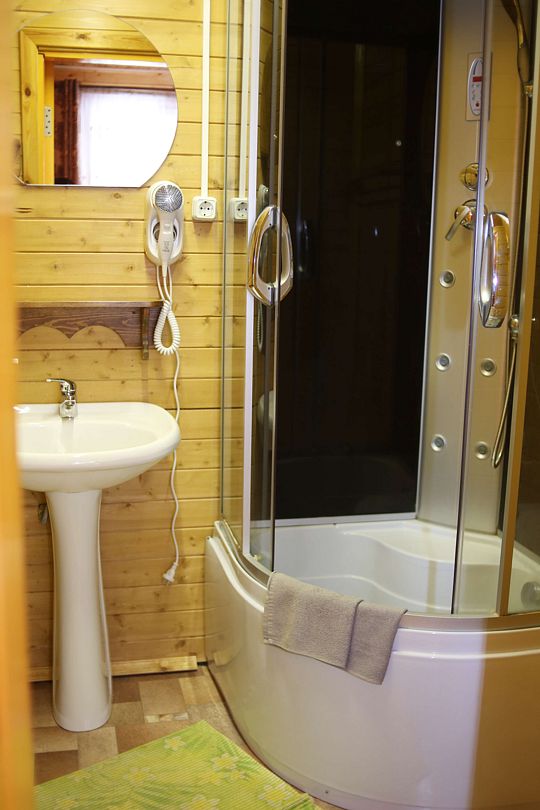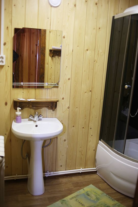 В административном здании базы отдыха расположено два номера (эконом) на два и три места с туалетной комнатой. Душ на территории загородного комплекса работает круглосуточно.