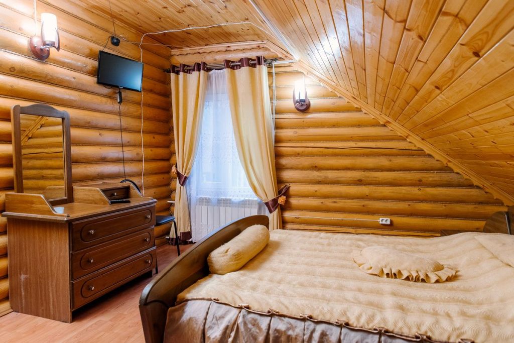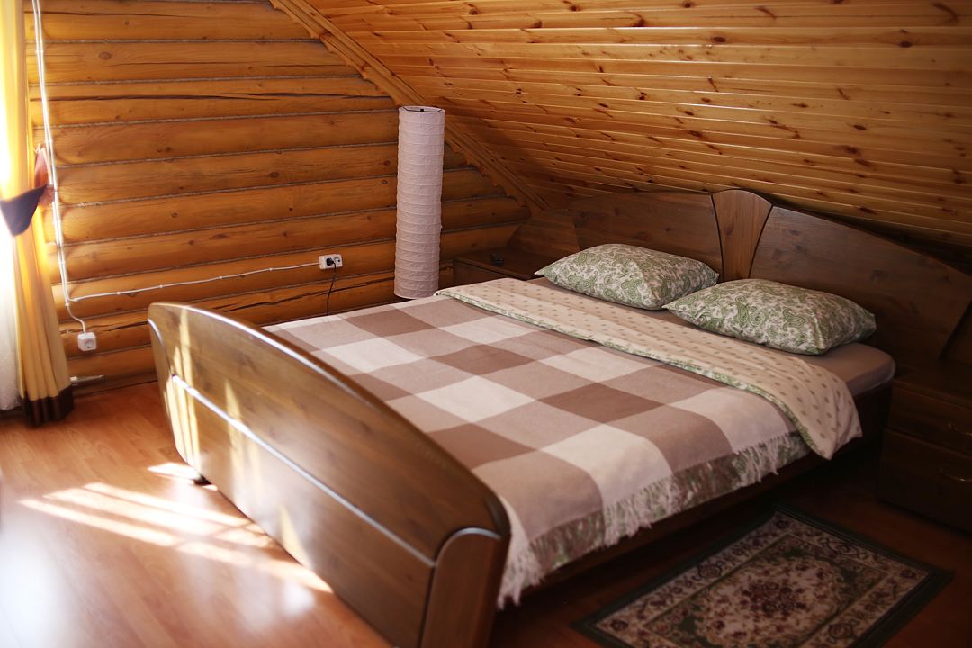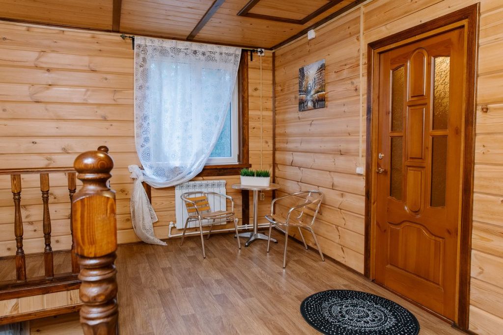 Villf-коттедж — это со вкусом оформленный деревянный семейный дом с верандой и балконом, просторным холлом и гостиной, совмещенной с оборудованной холодильником, электрическим чайником, СВЧ-печью кухней. На втором этаже расположены уютные спальни.