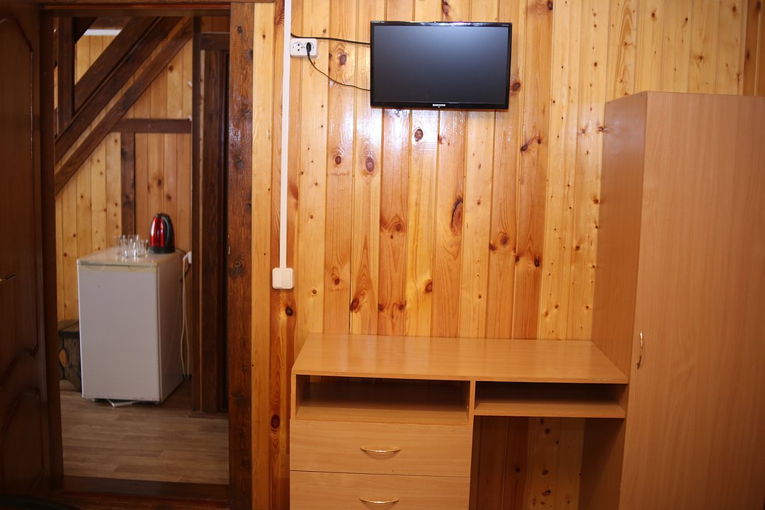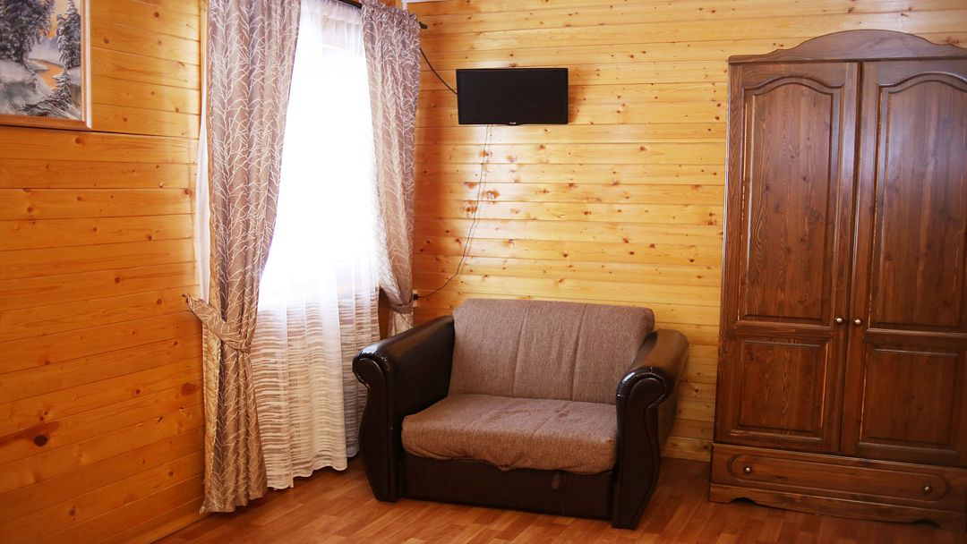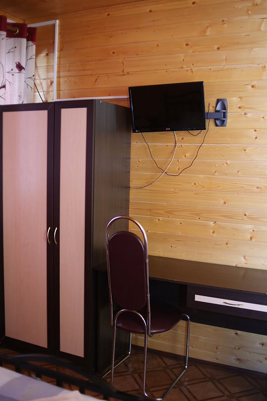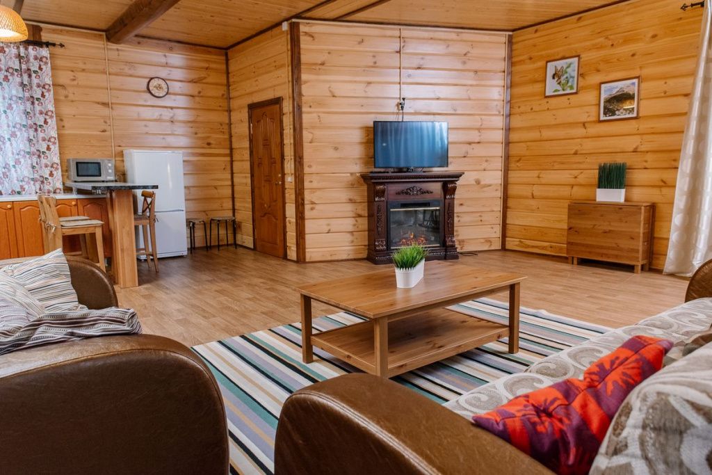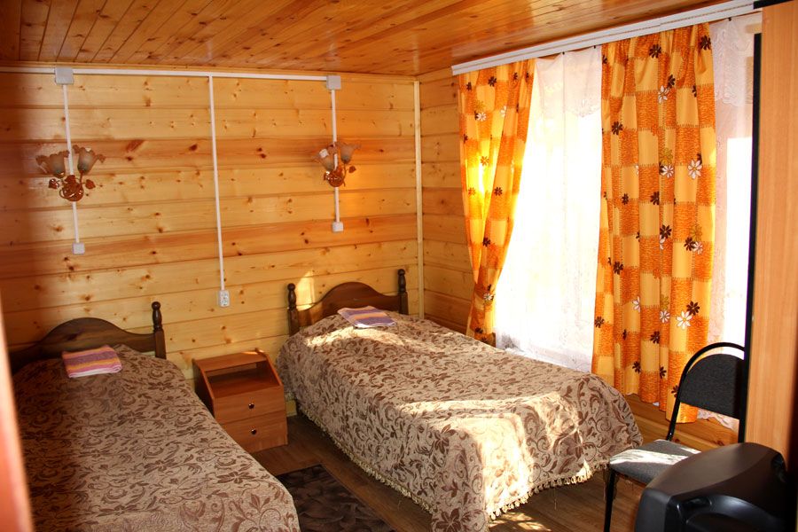 Все деревянные коттеджи оборудованы отоплением, в туалетной комнате есть душевая кабинка, имеется горячая и холодная вода, холодильник и телевизор. В любом коттедже может с удобством разместиться Ваша семья или компания друзей.