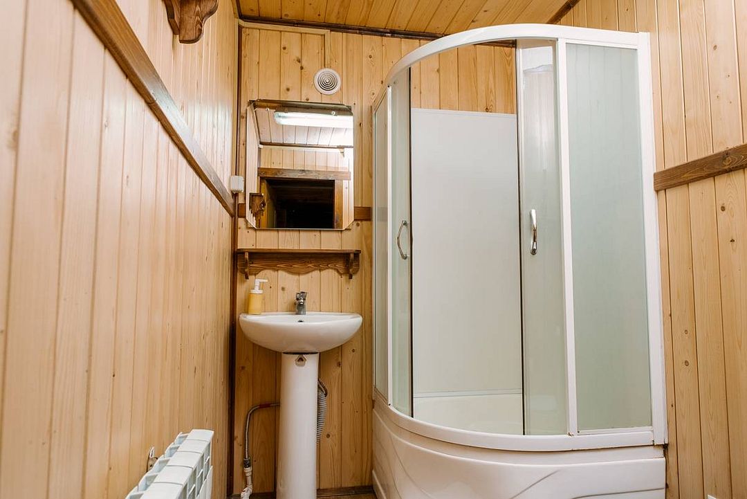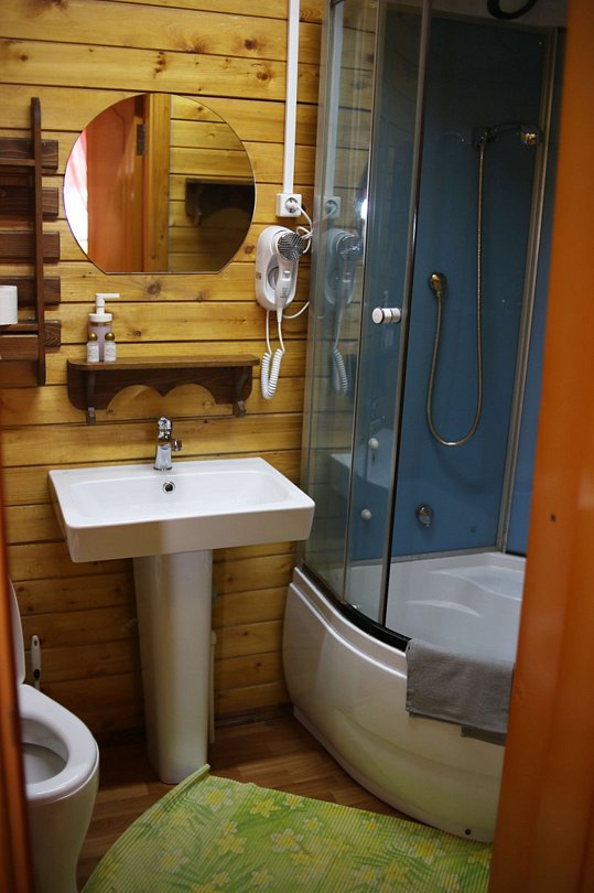 В административном здании базы отдыха расположено два номера на два и три места с туалетной комнатой. Душ на территории загородного комплекса работает круглосуточно. Опрятная комната позволит вам хорошо отдохнуть. Подходит для командированных и следующих проездом через загородный комплекс «Нью-Ветлуга – Парк. Семейные владения Бобылей».