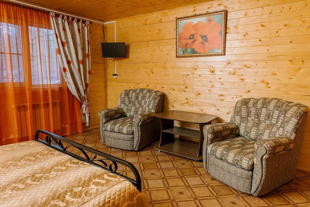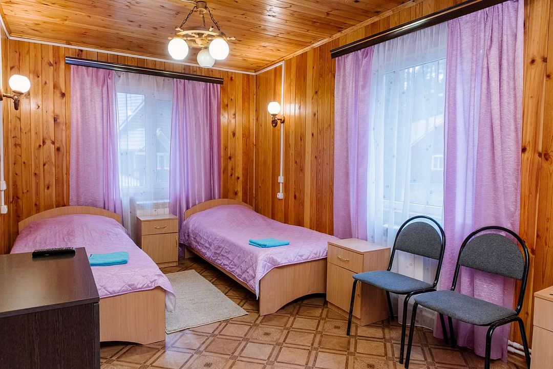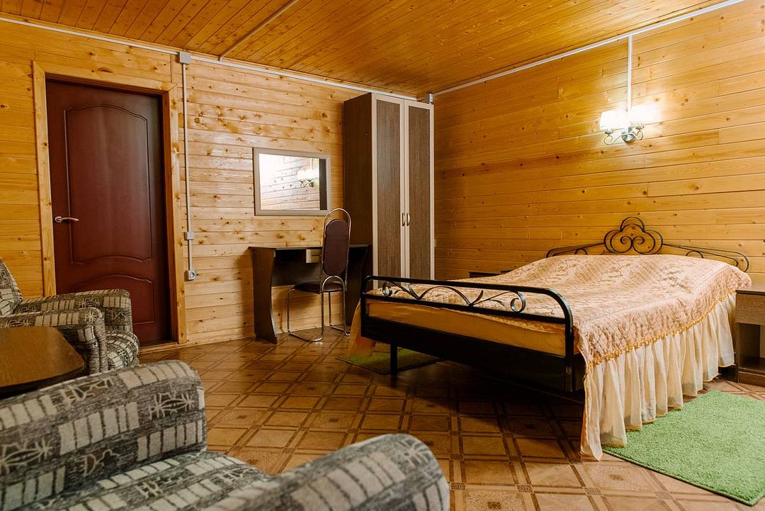 Номерной фонд состоит из 32 комфортабельных номеров в деревянных коттеджах общей вместимостью до 90 человек. Все коттеджи построены из натурального дерева и благоустроены, поэтому проживания в них будет комфортным и приятным.