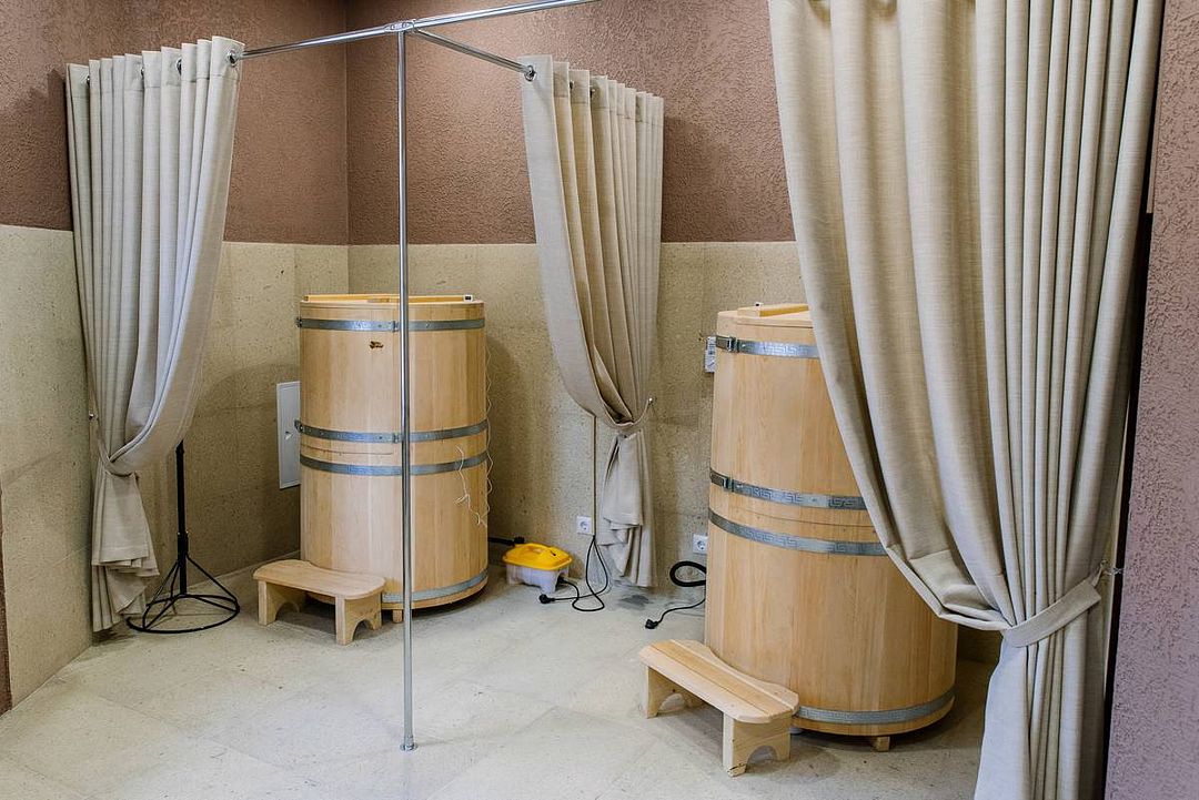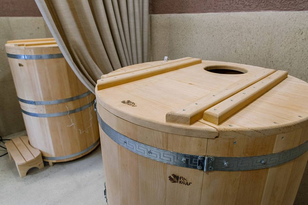 Инфраструктура: зона отдыха, простыни, обливное ведро, душЧтобы протопить русскую баню, требуется не менее пяти часов. Баню топят по всем правилам, соблюдая традиции.