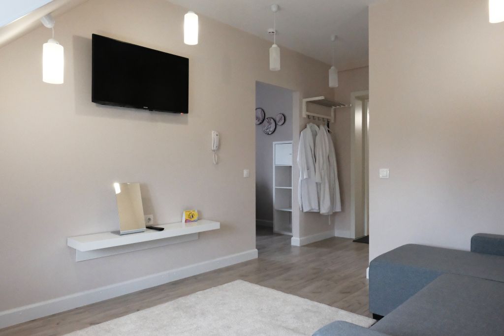 В номере есть телевизор и холодильник. Перечисленные услуги есть не во всех номерах.