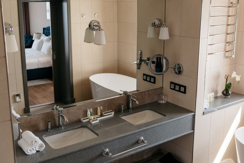 кабельное телевидение, Wi-Fi, светильник, настольные лампы, фен, система безопасности, электронные замки, ванна или душевая кабина, халаты, банные полотенца, тапочки, гигиенические средства, косметические средства, двуспальная кровать, две односпальные кровати, гипоаллергенное белье, ортопедический матрас, тумбы, стулья, шкаф для одежды, вешалки, багажная тумба, пуфики, ковер, звуконепроницаемые стены и окна, письменные принадлежности, чайный набор, обслуживание номеров, информационная карта, меню, сейф, минеральная вода, чайник, унитаз, раковина, косметическое зеркало, ковровое покрытие, отопление, плиточное покрытие, вид на реку, высокие потолки, меню подушек, стаканы, стул, туалетные средства, сплит-система, внутренний телефон, телевизор с плоским экраном, мини-холодильник, москитная сетка, номер для некурящих, рабочий стол, чайная станция, фумигатор, уборка номера, набор для приготовления чая и кофе, услуги прачечной (платно), вешалки-плечики, бутилированная вода, мини-бар (платно), шапочка для душа, мыло, затемняющая штора, окна от пола до потолка, зеркало в полный рост, прачечная (за дополнительную плату), можно с питомцамиВ гостиничном номере
