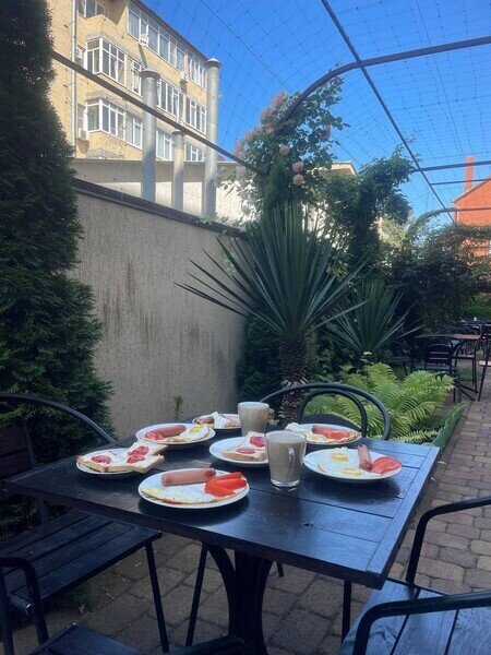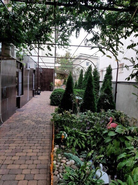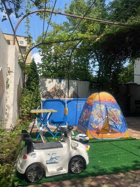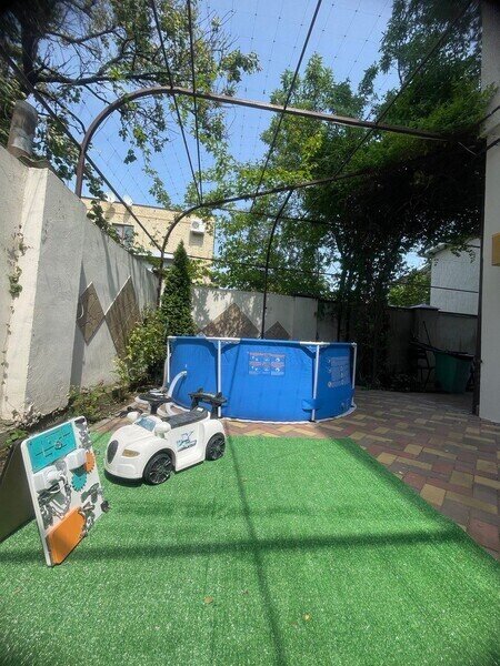 На территории гостевого дома имеется небольшой сад с беседкой, мангальная зона, детская площадка и бассейн. Расстояние до берега Черного моря составляет всего 15 минут, а до центра города можно добраться за 5 минут.