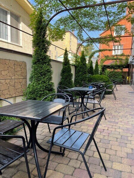 Напротив отдельного входа, во дворе, расположен индивидуальный столик.