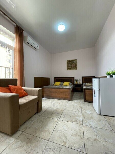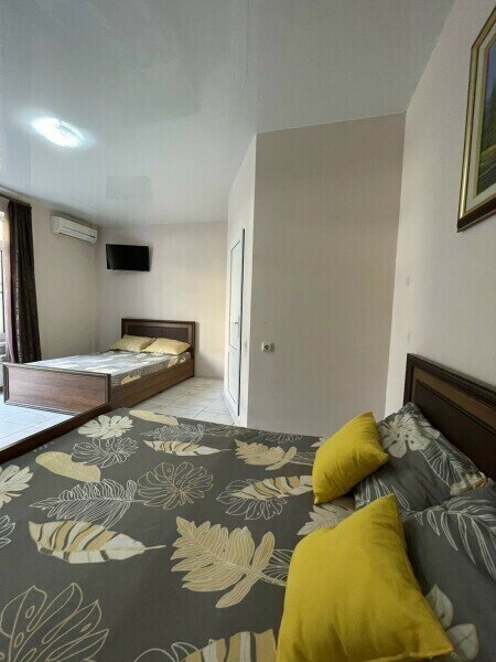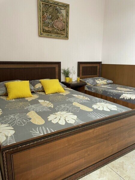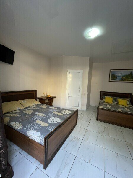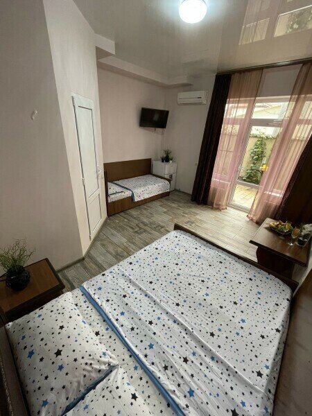 Уютный 3-местный номер на первом этаже с отдельным входом. В номере двуспальная и односпальные кровати.