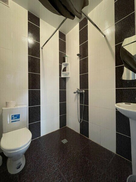 В номере ванная комната с туалетом и душем