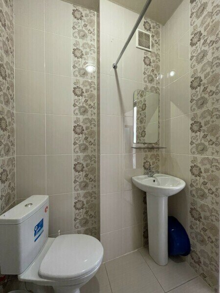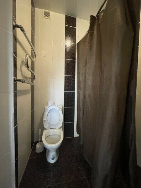 В номере ванная комната с туалетом и душем.