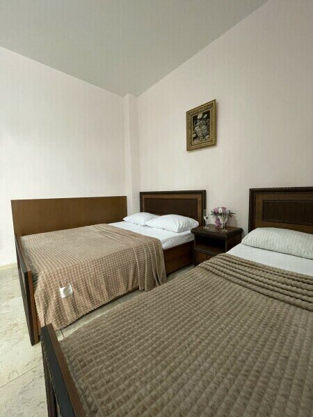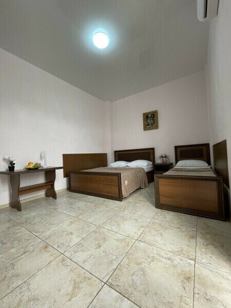 Просторные номера на 2 м или 3 м этажах. В номере установлены двуспальная и односпальные кровати.