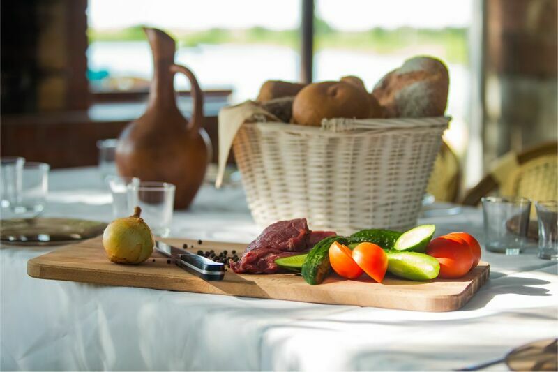 Ресторан находится в гостинице. Кухня ресторана очень разнообразна: русская, европейская. Обширное меню, включая фуршетное и банкетное, шведский стол и современное оборудование для приготовления самых изысканных блюд.