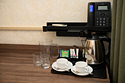 Нам довелось отдыхать в двух разных номерах: премиум-класса и обычном. Номер премиум-класса обладал очень, на мой взгляд, просторной комнатой, и предназначался, я думаю, для проведения медового месяца - в номере преобладал розовый цвет, да ещё и над кроватью висел розовый балдахин... Но в принципе, номер вполне уютный, с видом на море. В номере имелись халаты, одноразовая обувь, одноразовые средства гигиены (гели, шампуни, мыло). Пожалуй, единственным минусом, который мне запомнился, был слегка шумноватый мини-холодильник.