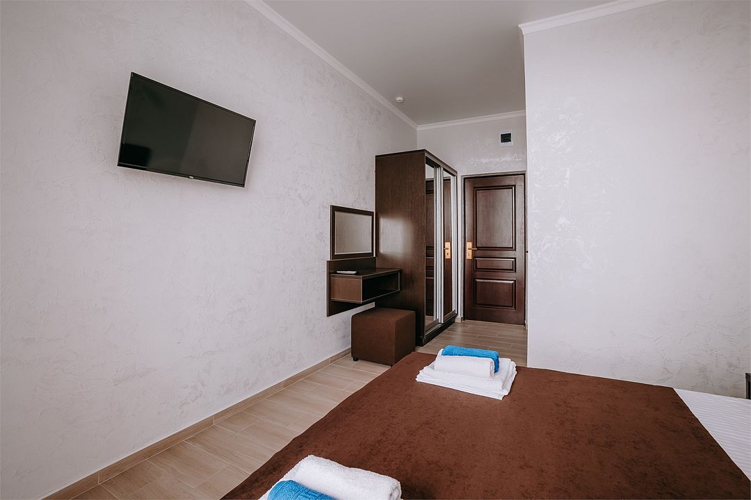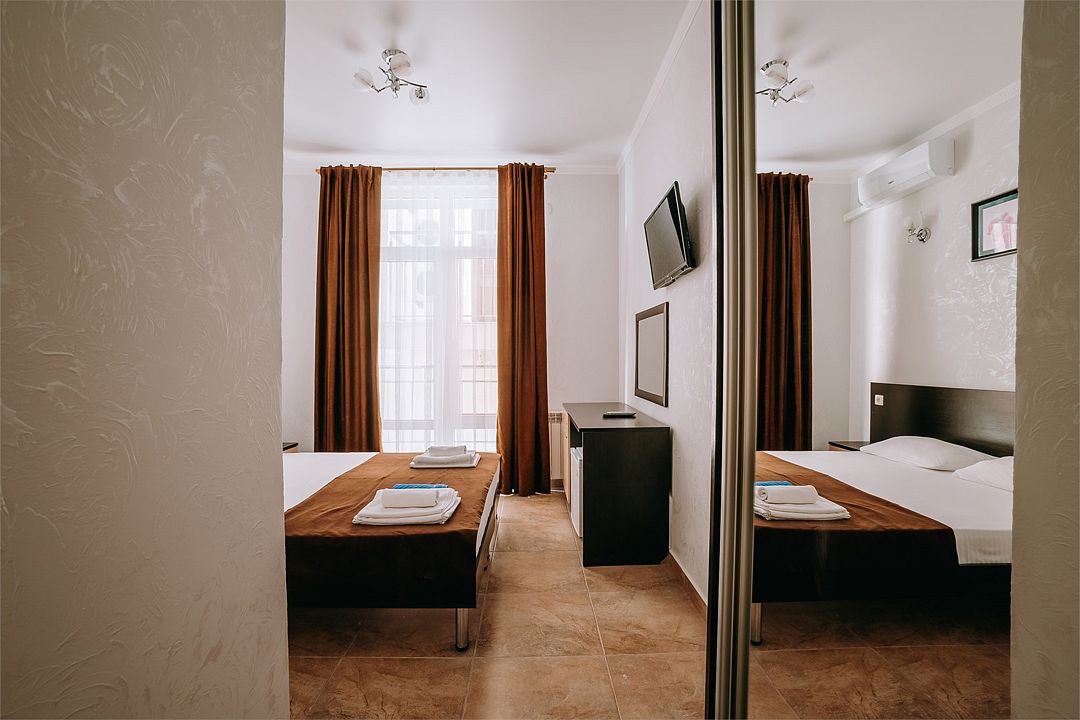 Wi-Fi, кондиционер, фен, душевая кабина, двуспальная кровать, односпальная кровать, сейф, чайник, вид во двор, туалет, телевизор с плоским экраном, шкаф-купеВ гостиничном номере