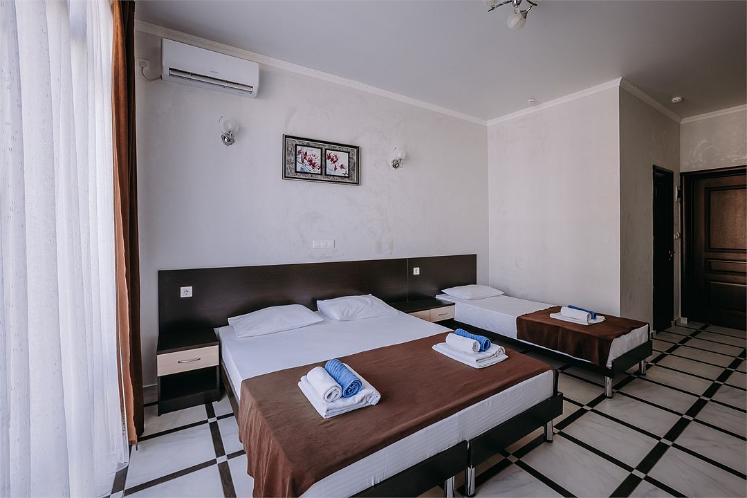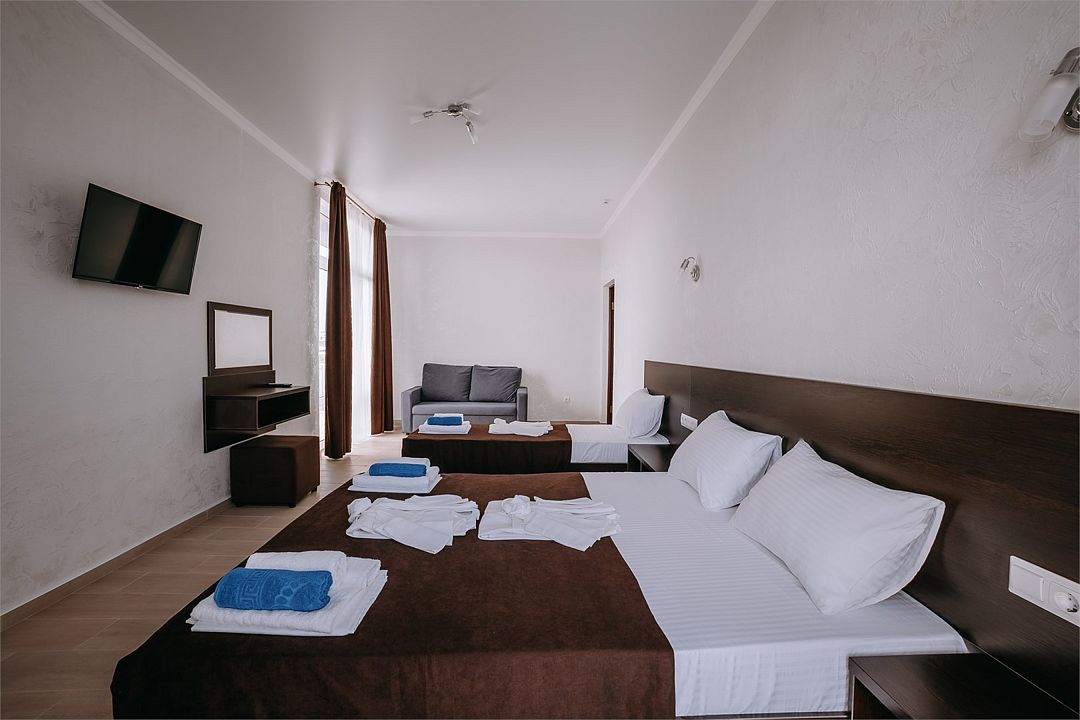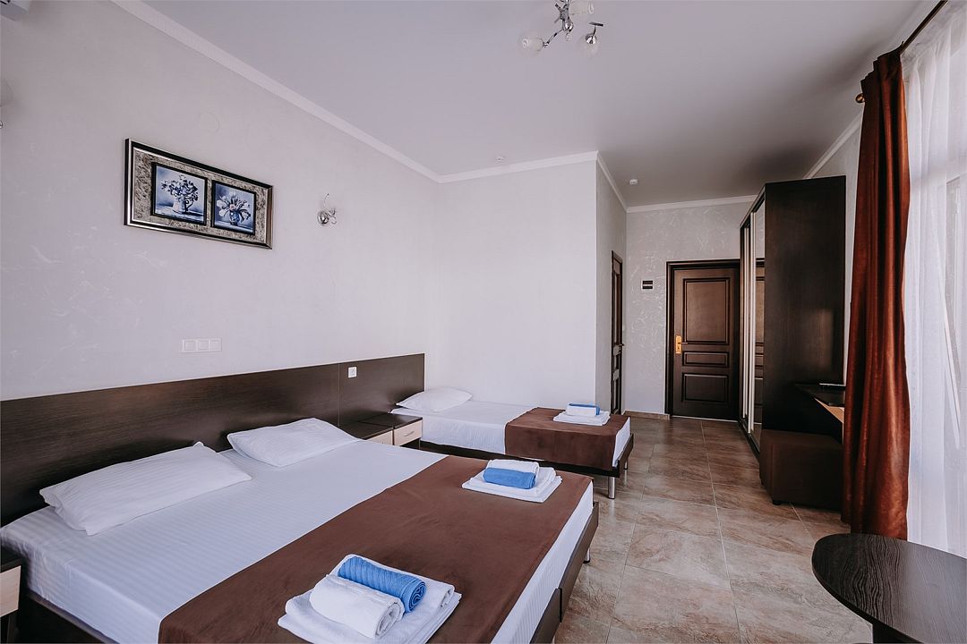 Путешествие с семьейОтличное сочетание цена / качествоОтдыхали семьей (4 человека) с 9 по 20 июля 2016. Забронировали на сайте ААнапа в январе 3-местный номер с доп. местом, предоплата - стоимость одних суток.
