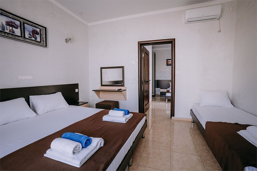 Четырехместный номер с балконом, кондиционером и телевизором с кабельными каналами.Услуги и удобства
